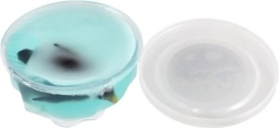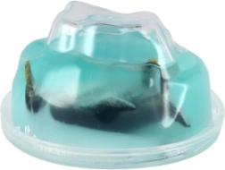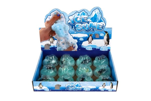 El slime se guarda en un “iceberg” de plástico transparente que resalta el tema ártico.