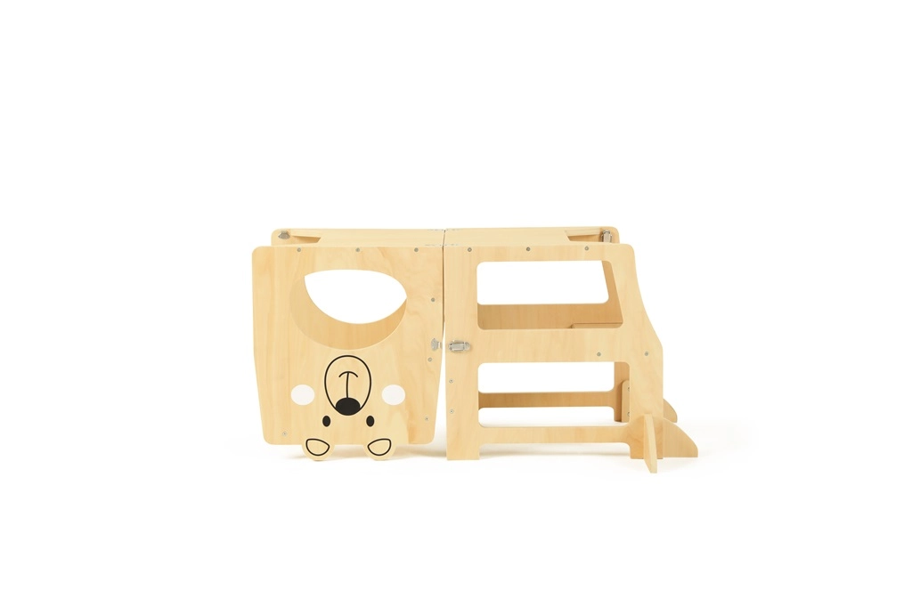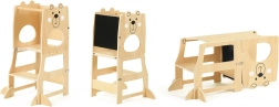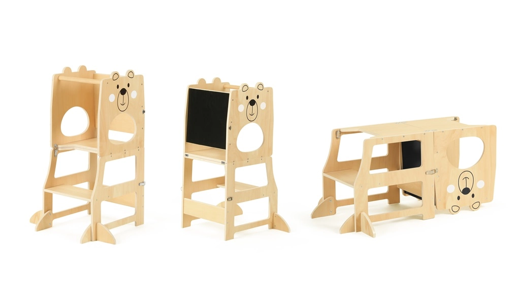 Torre de aprendizaje Osito 3 en 1 ofrece un uso multifuncional que permite a los niños mejorar sus habilidades motoras. Con esta torre, los niños pueden ganar independencia en diversas actividades. Su diseño alegre y la construcción robusta de madera certificada FSC® garantizan no solo un atractivo estético, sino también una elección de materiales responsable con el medio ambiente.