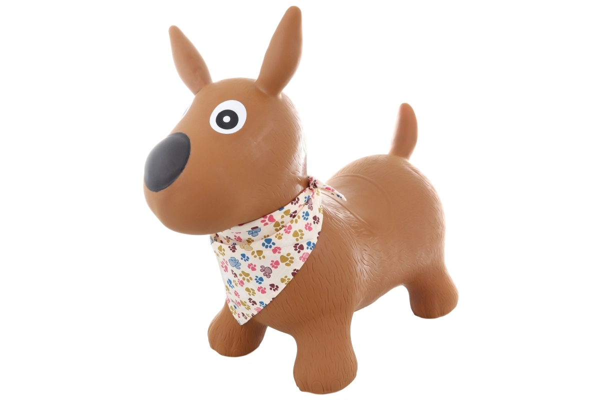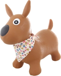 Adorable saltador de goma con forma de perrito con pañuelo que encantará a cualquier niño a partir de 1 año. Ofrece asiento estable, fácil agarre y un divertido entrenamiento de movimiento. Capacidad máxima 50 kg, cómoda altura del asiento 24 cm y bombín incluido en el paquete para un inflado rápido.