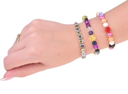 Una amplia paleta de tonos y formas, incluidas cuentas con letras, te permite crear pulseras, collares y colgantes únicos exactamente como los imaginas.