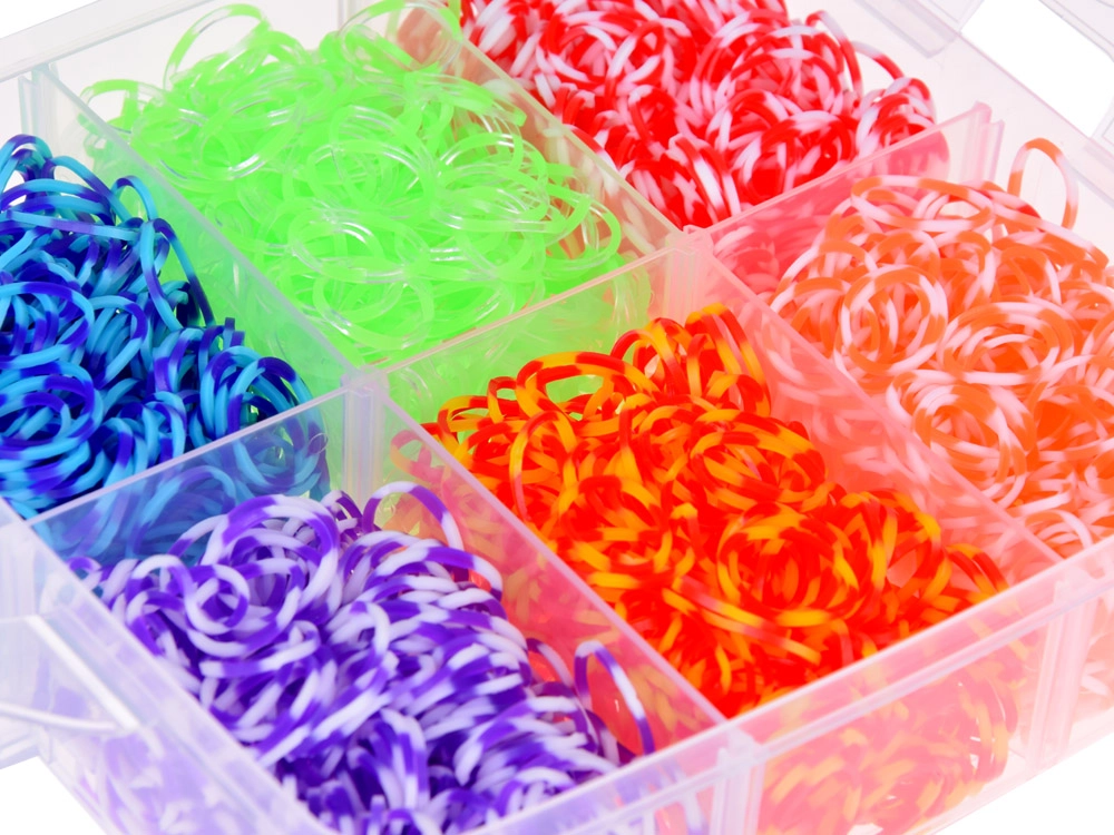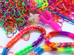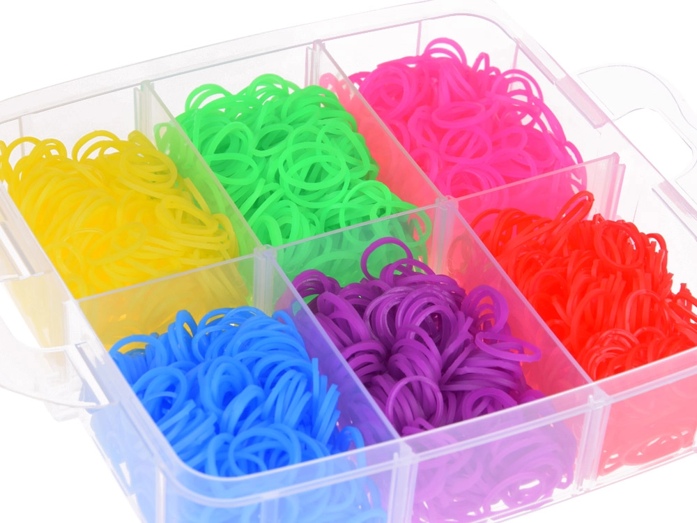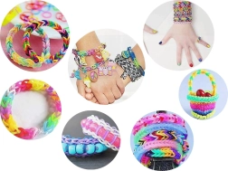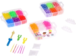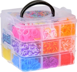 Descubre el mundo de la creación con este set para pulseras de gomas con un completo equipamiento y hasta 4500 piezas en 15 colores. Un práctico organizador transparente, ganchos, hondas, telar y cuentas de colores permiten a niños y adultos crear pulseras, collares y colgantes originales. Una diversión estupenda que desarrolla la creatividad y la motricidad fina.