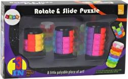 Conoce el set de tres rompecabezas lógicos en forma de cilindro que te brindarán horas de diversión y desafíos mentales. Determinar los colores en una misma fila girando los anillos y desplazando los cubos de colores será tu nueva forma de diversión.