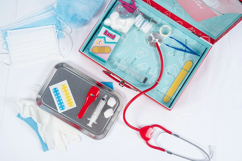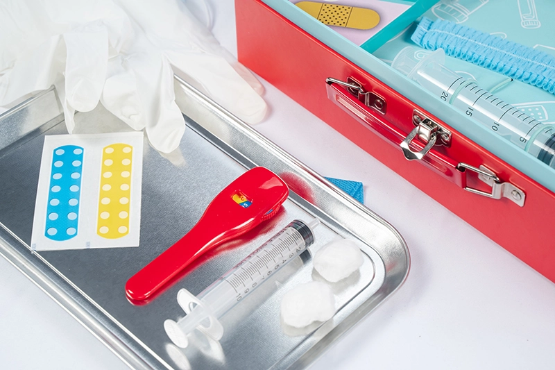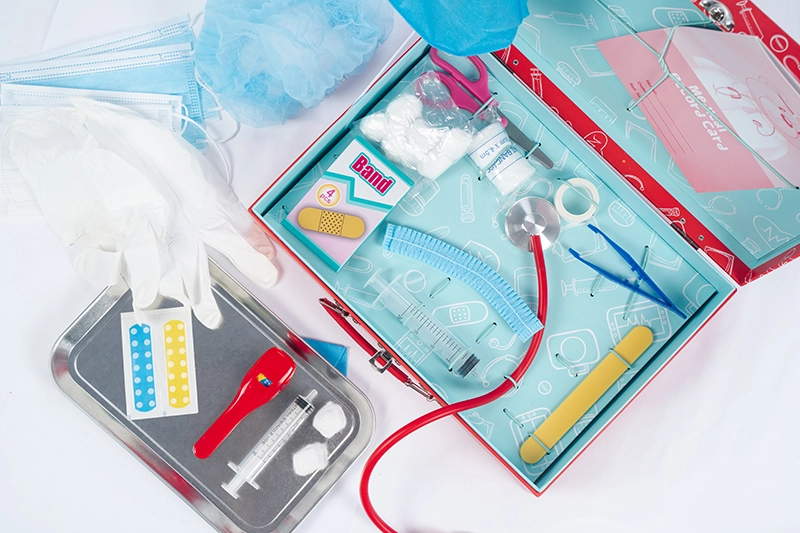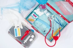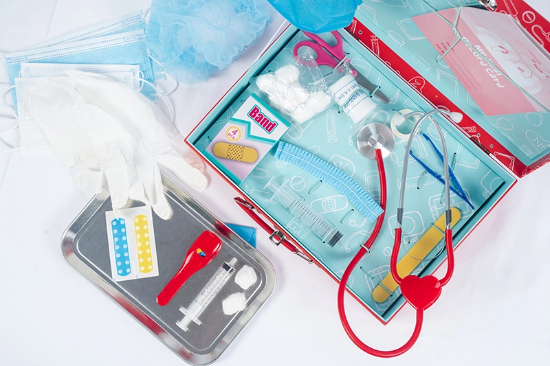 El maletín médico contiene 27 piezas de equipamiento sanitario para un juego de roles realista.