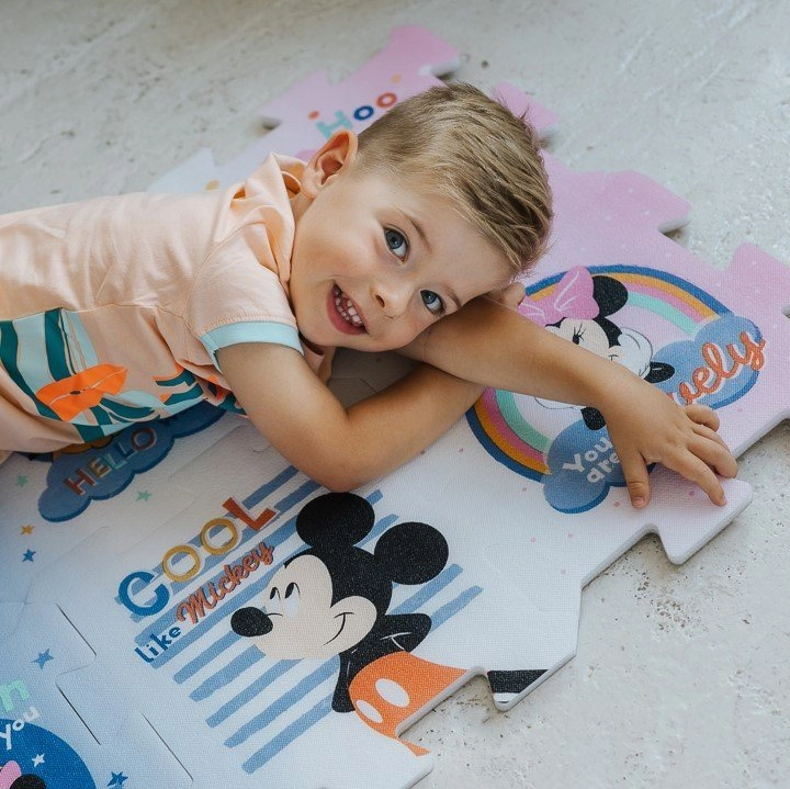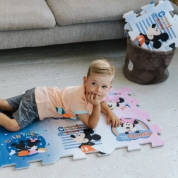 Sumérgete en el mundo del juego con este rompecabezas de espuma que presenta imágenes del querido Mickey y sus amigos. El rompecabezas está hecho de un material especial que no es la típica espuma EVA acanalada, sino que recuerda a una esterilla gruesa o a un mirelón de varias capas.