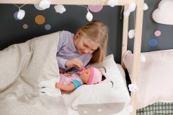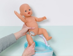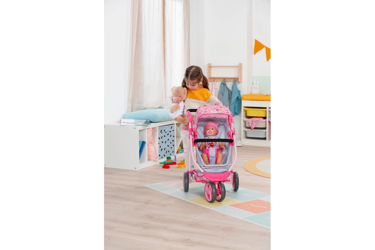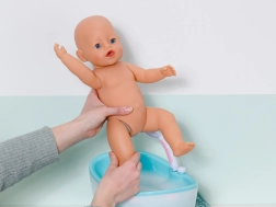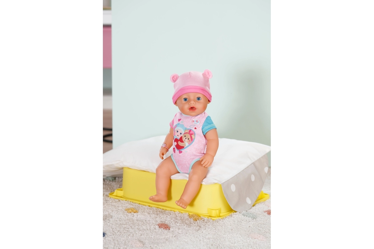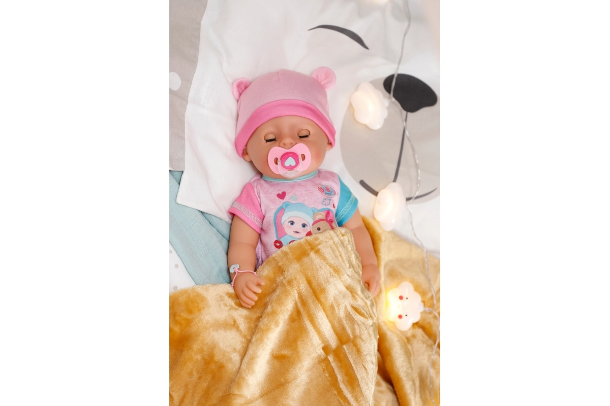 Emma es una adorable muñeca BABY born con funciones realistas que encantan a los niños. Bebe agua del biberón, al girar el chupete abre y cierra los ojos, puede llorar lágrimas y hacer pis en el pañal o en el orinal. Gracias a su diseño resistente, también se puede bañar, para disfrutar de mucha diversión dentro y fuera de la bañera.