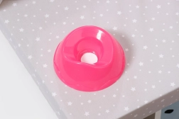 En el platito aparece la comida al contacto con el agua y en el orinal se muestra “mágicamente” el resultado. Una forma estupenda de aprender rutinas de cuidado jugando.