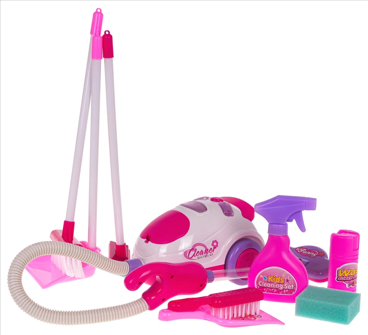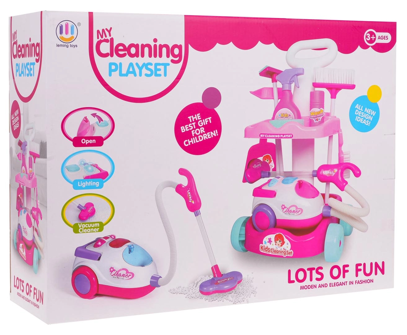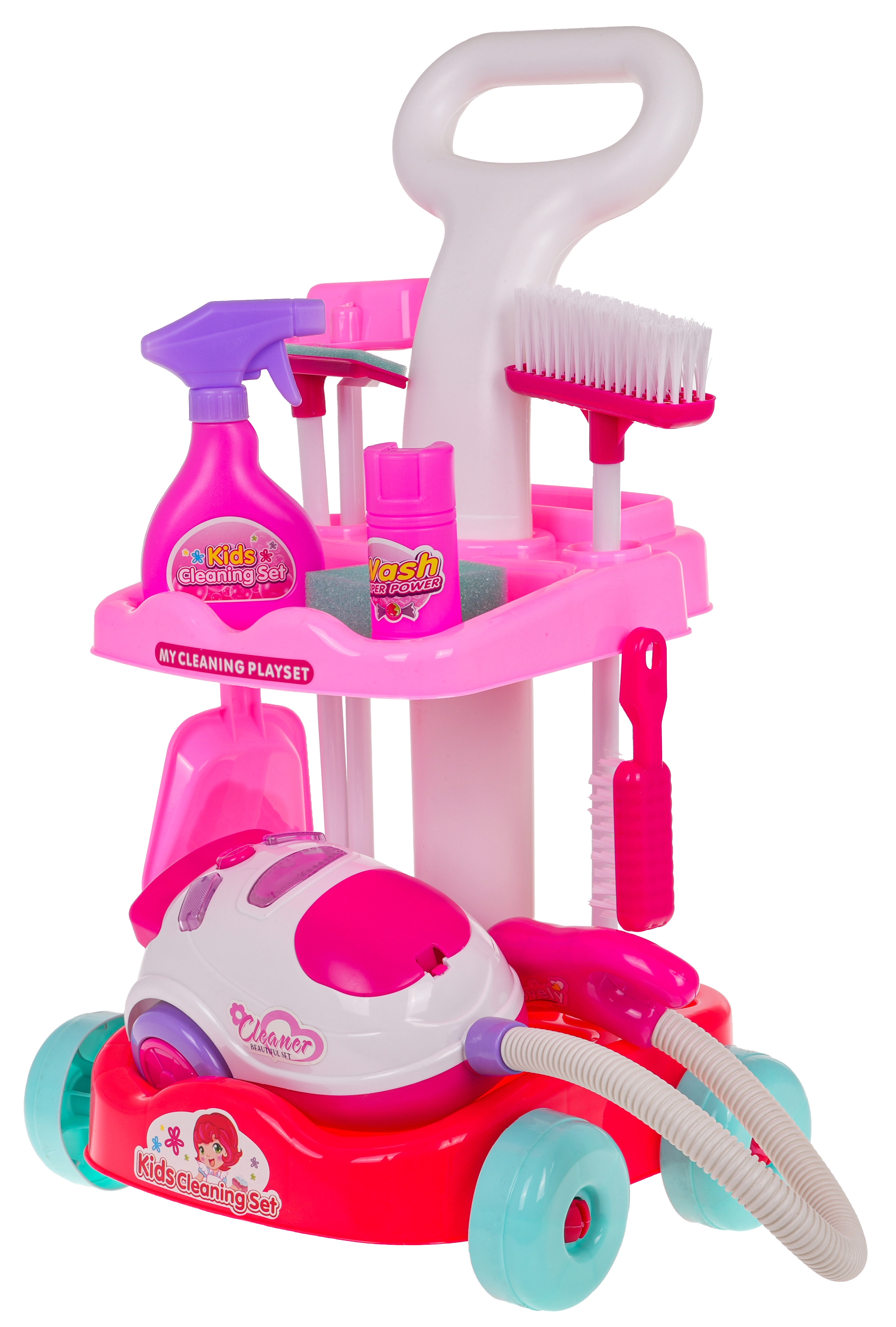 Este juego de limpieza infantil ofrece todo lo que necesitan los pequeños hacendosos: un carrito estable con ruedas y dos estantes, una aspiradora interactiva con efectos de luz y sonido y una amplia gama de accesorios. Gracias a su diseño seguro de plástico resistente y colores atractivos, a los niños les encantará imitar la limpieza real mientras aprenden a mantener el orden.