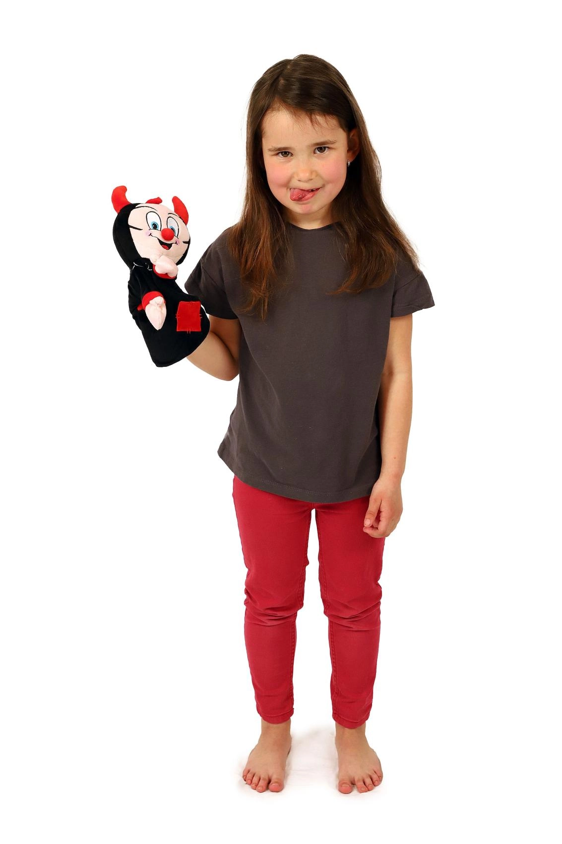 La marioneta de mano de peluche diablillo TEDDIES es una excelente compañera para el teatro en casa, la lectura de cuentos y el juego libre. A los niños les encantará su aspecto llamativo con cuernos y su sonrisa amistosa, mientras que los padres apreciarán su fabricación segura y su fácil mantenimiento.