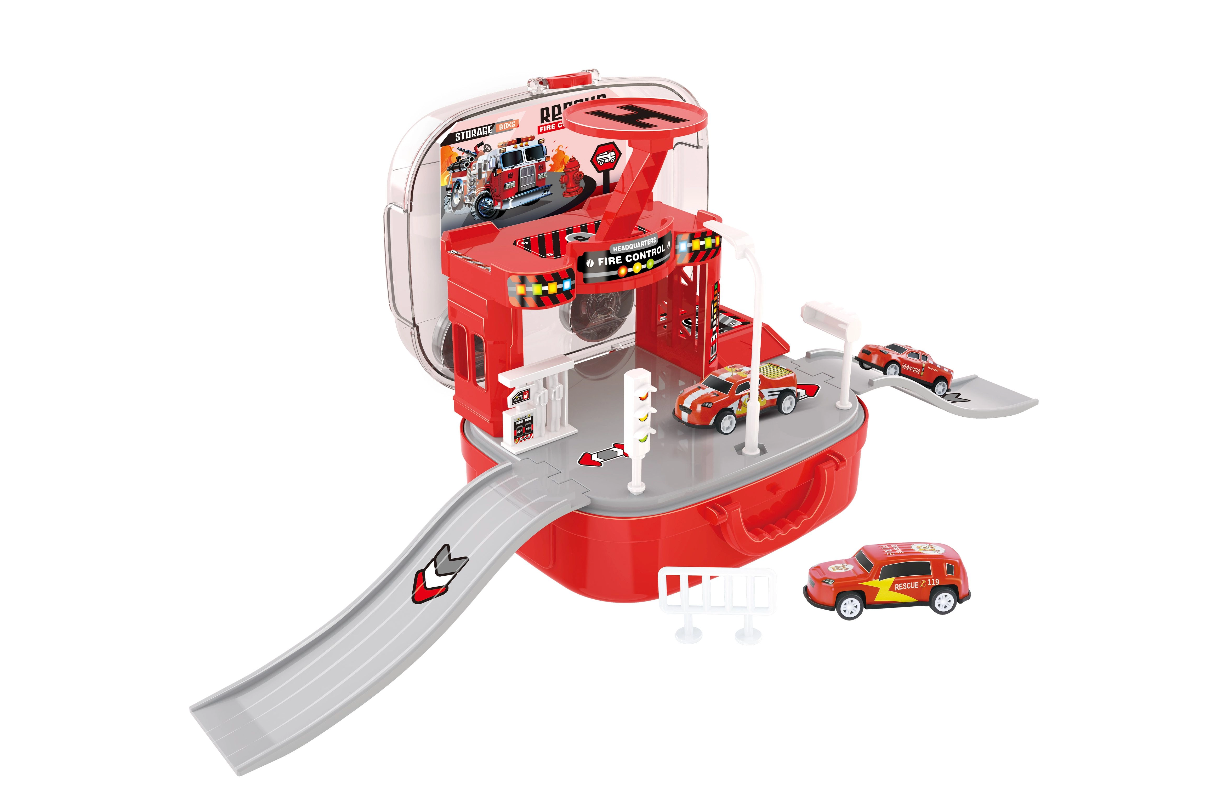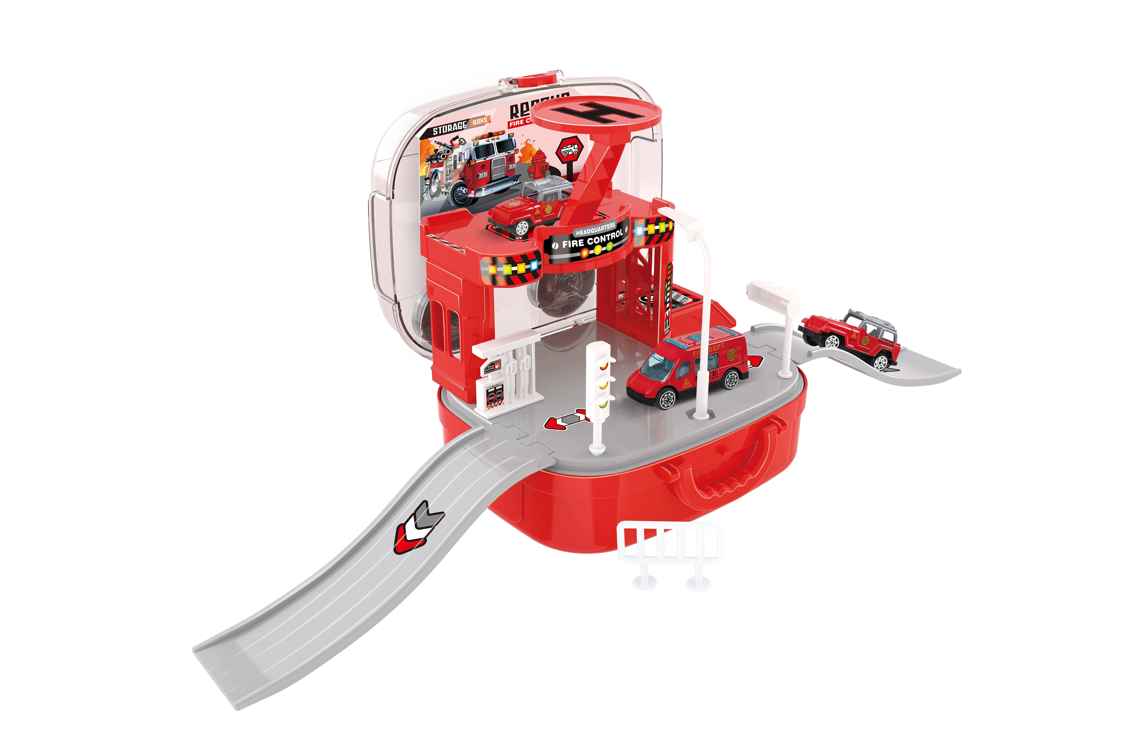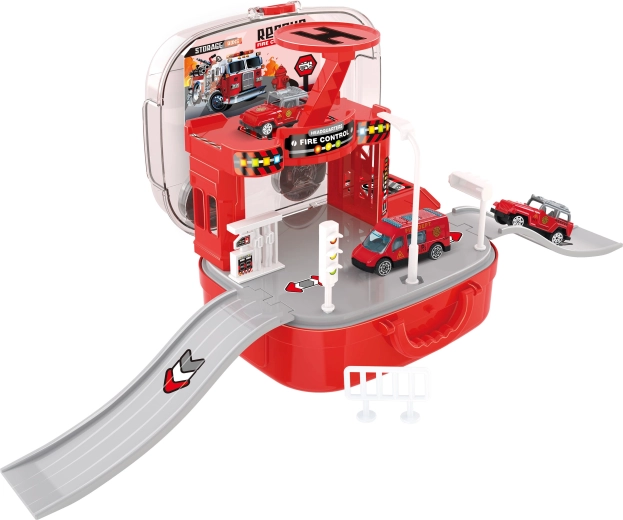 Esta ingeniosa estación de bomberos en maletín encantará a los pequeños amantes de los equipos de rescate. Los niños pueden crear sus propias intervenciones, mover los vehículos entre pisos con el ascensor manual y desplegar el helicóptero para misiones rápidas. Gracias al práctico maletín, toda la estación se cierra y se transporta fácilmente después del juego.