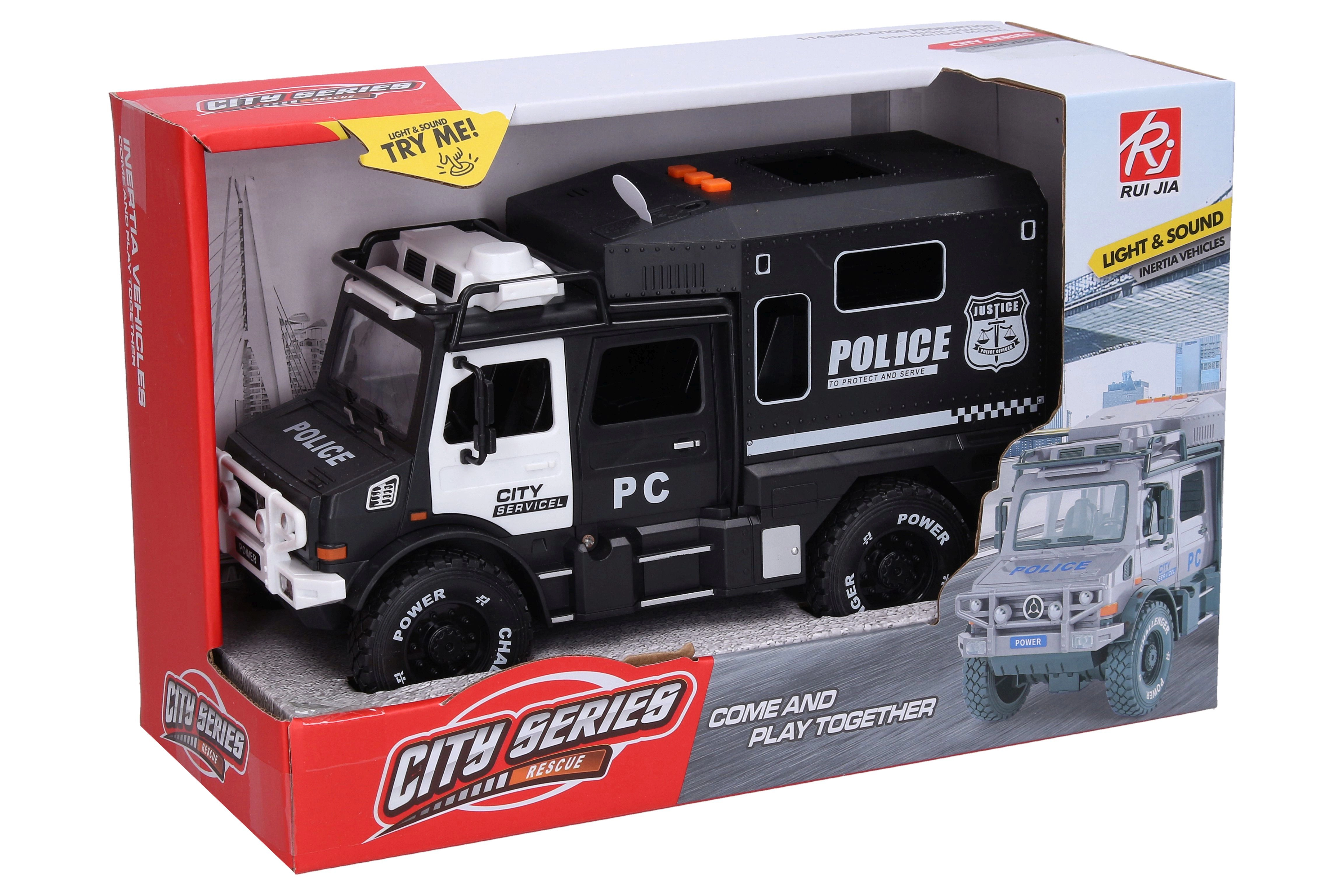 Presentamos un coche de policía con una amplia gama de efectos que encantará a cualquier pequeño admirador. El modelo ofrece: