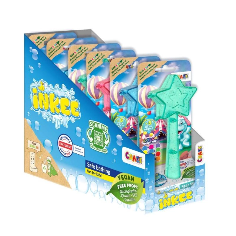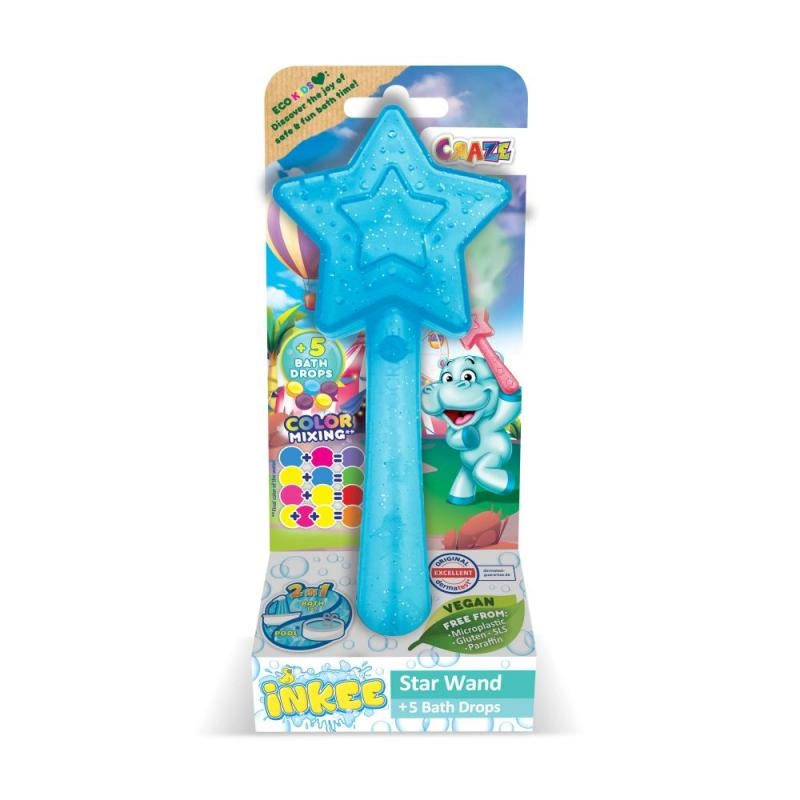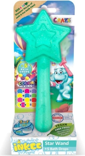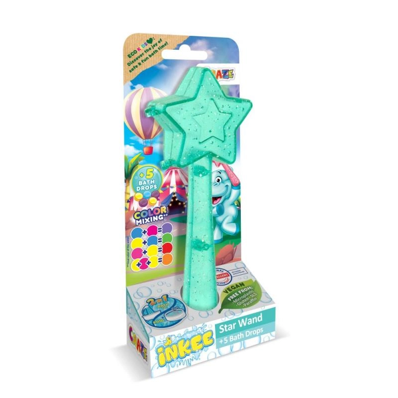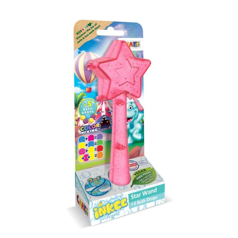 Convierte la hora del baño en una experiencia inolvidable con la Varita mágica Inkee. Cada varita con forma de estrella incluye 5 gotas para el baño que ofrecen colores preciosos y diversión burbujeante. Los niños pueden jugar, mezclar diferentes colores y crear efectos arcoíris directamente en el agua.
