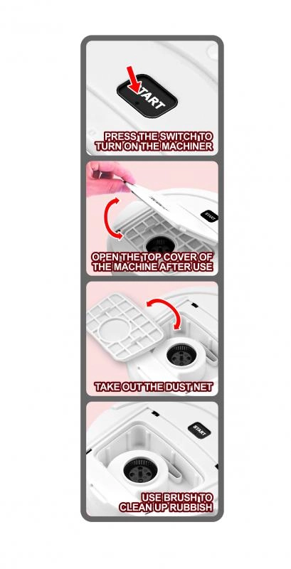 El robot está diseñado para moverse de forma aleatoria y recoger el polvo del suelo de manera eficaz.