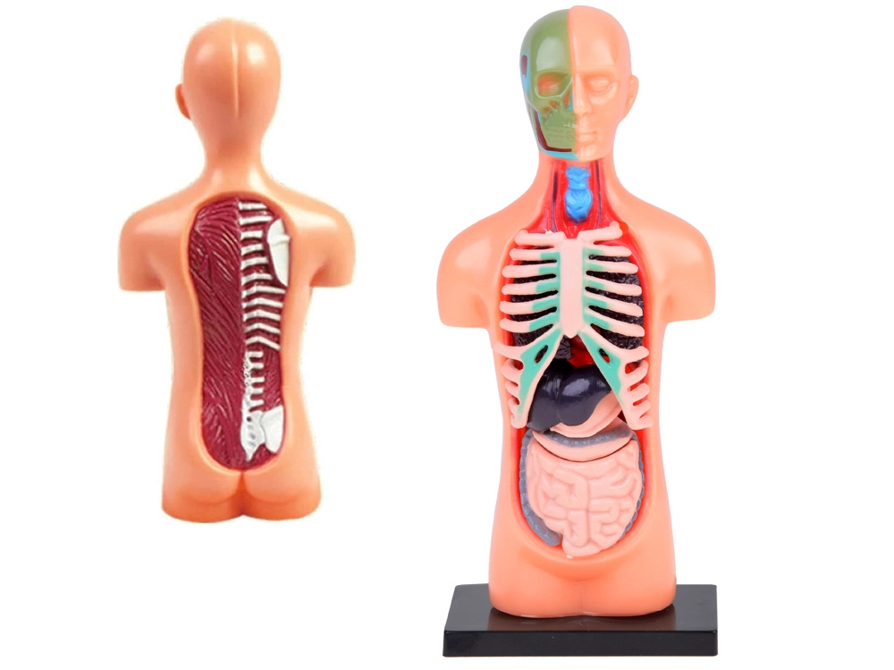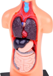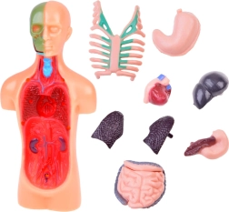 El corazón, los pulmones, el hígado, el estómago, el páncreas y los intestinos pueden extraerse y volver a colocarse, haciendo que el aprendizaje sea visual y entretenido.