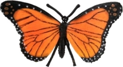 Imita fielmente la característica coloración naranja y negra de la monarca, que destaca en cualquier decoración.