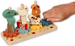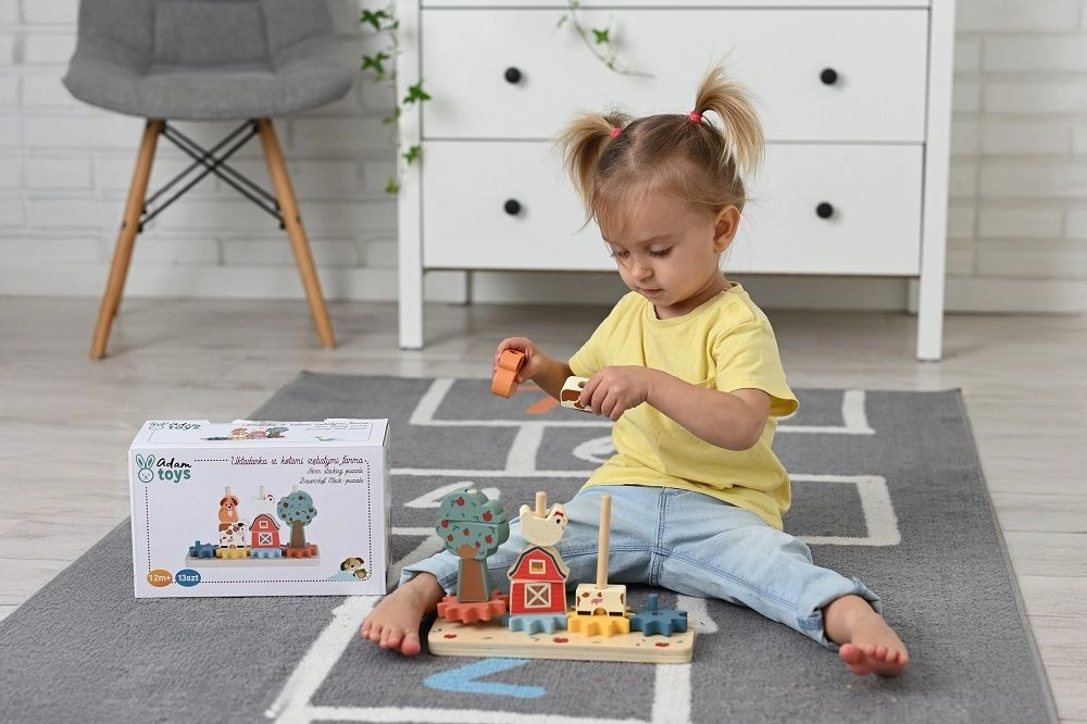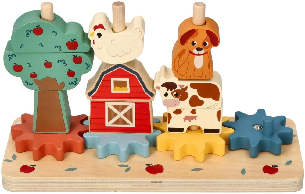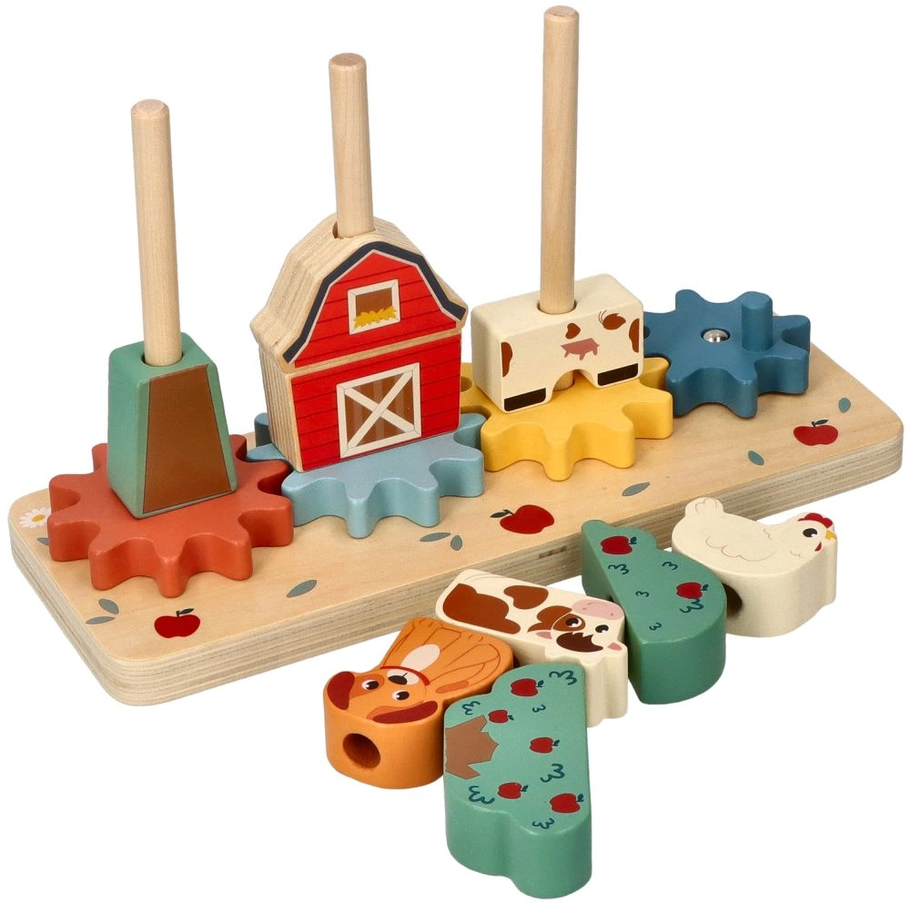 El rompecabezas 'Granja loca' está diseñado para enriquecer la imaginación lúdica de los niños mediante piezas de madera pintadas en colores vivos. Gracias a los elementos encajables con forma de granja, árboles y animales, los niños aprenden a colocar las piezas estratégicamente y a convertir los retos en juego. El juguete está equipado con engranajes que permiten a los niños descubrir los principios de la mecánica.