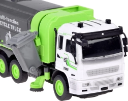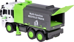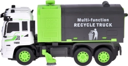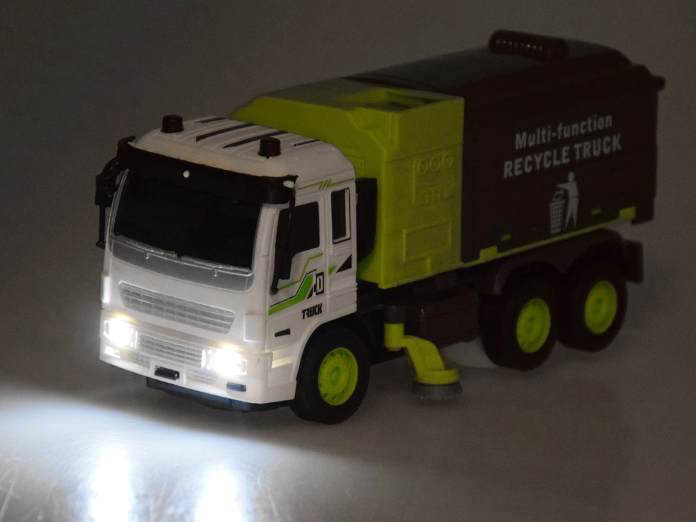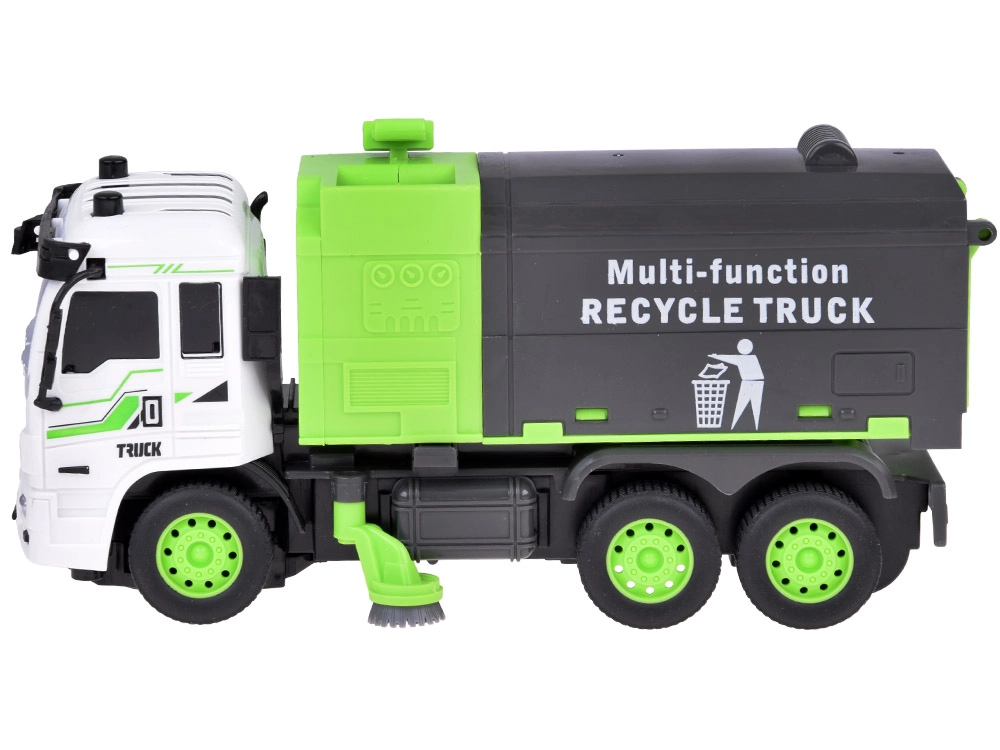 El camión de basura RC reproduce fielmente un camión de reciclaje real y enseña a los niños los principios de la separación de residuos. Gracias al mando a distancia, se maneja fácilmente hacia adelante/atrás y derecha/izquierda, mientras que los efectos de luz y el modo demo intensifican la experiencia de juego.