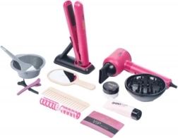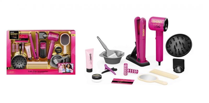 Desarrolla la creatividad e imaginación con este set de peluquería infantil de 16 piezas. Incluye secador a pilas, plancha para el cabello, peine, pinzas y rulos, espejito y accesorios para “teñir” el pelo, todo para un juego de salón de belleza realista.
