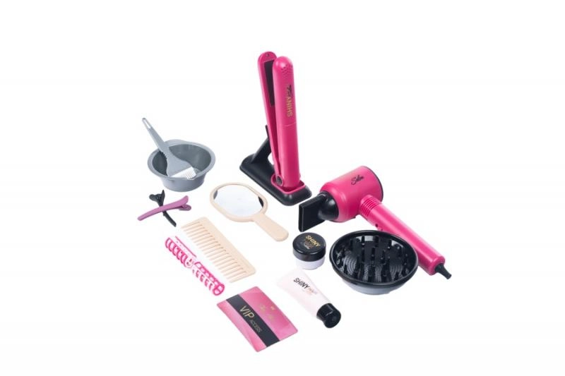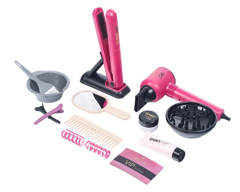 Este completo set de peluquería infantil ofrece a las pequeñas estilistas todo lo que necesitan para jugar a un salón real. Gracias al secador funcional a pilas y a todos los accesorios, los niños pueden imitar el peinado, el secado, el alisado e incluso el “tinte” de forma segura y divertida.