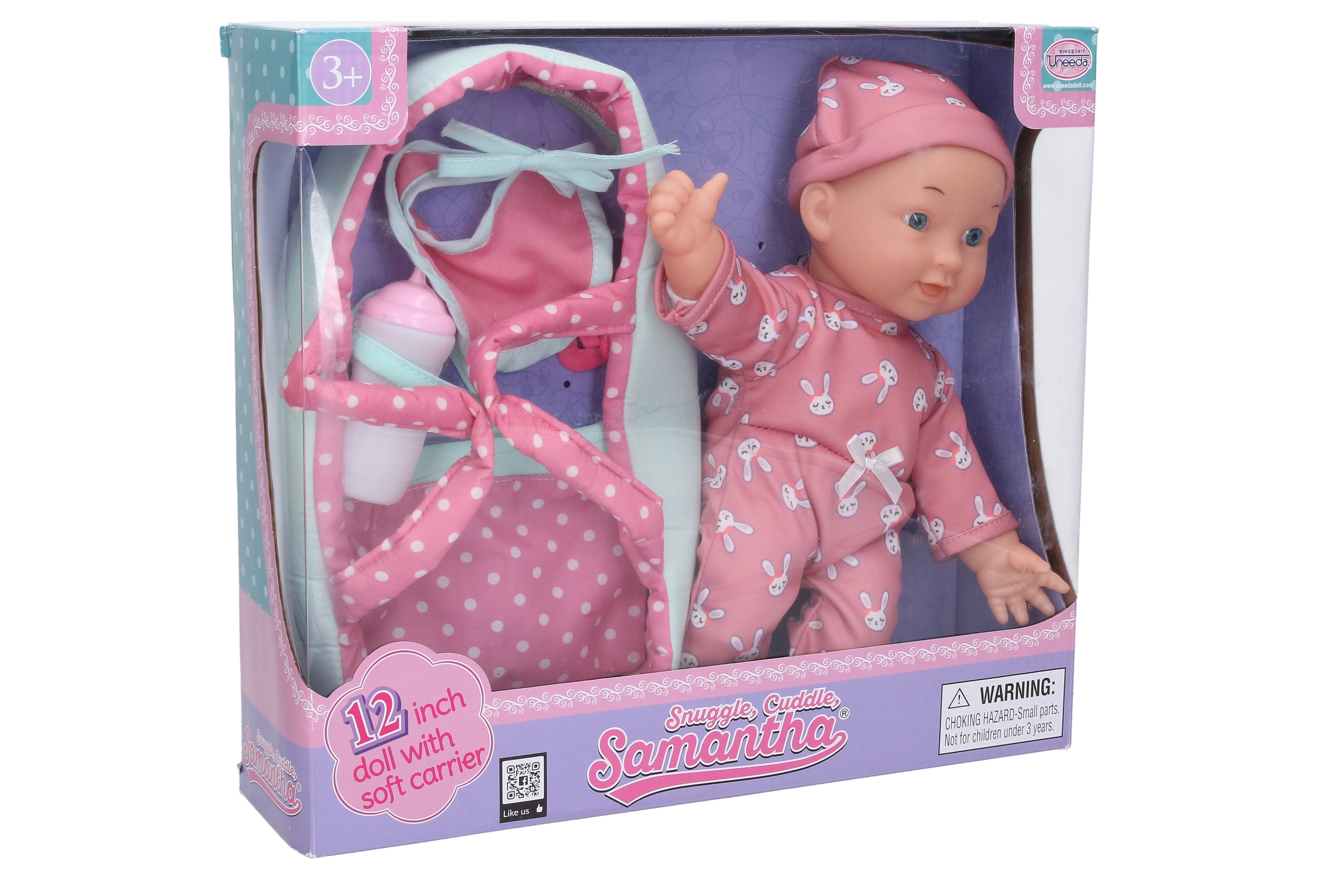 - El paquete incluye muñeca, bolsa de transporte, babero y biberón.