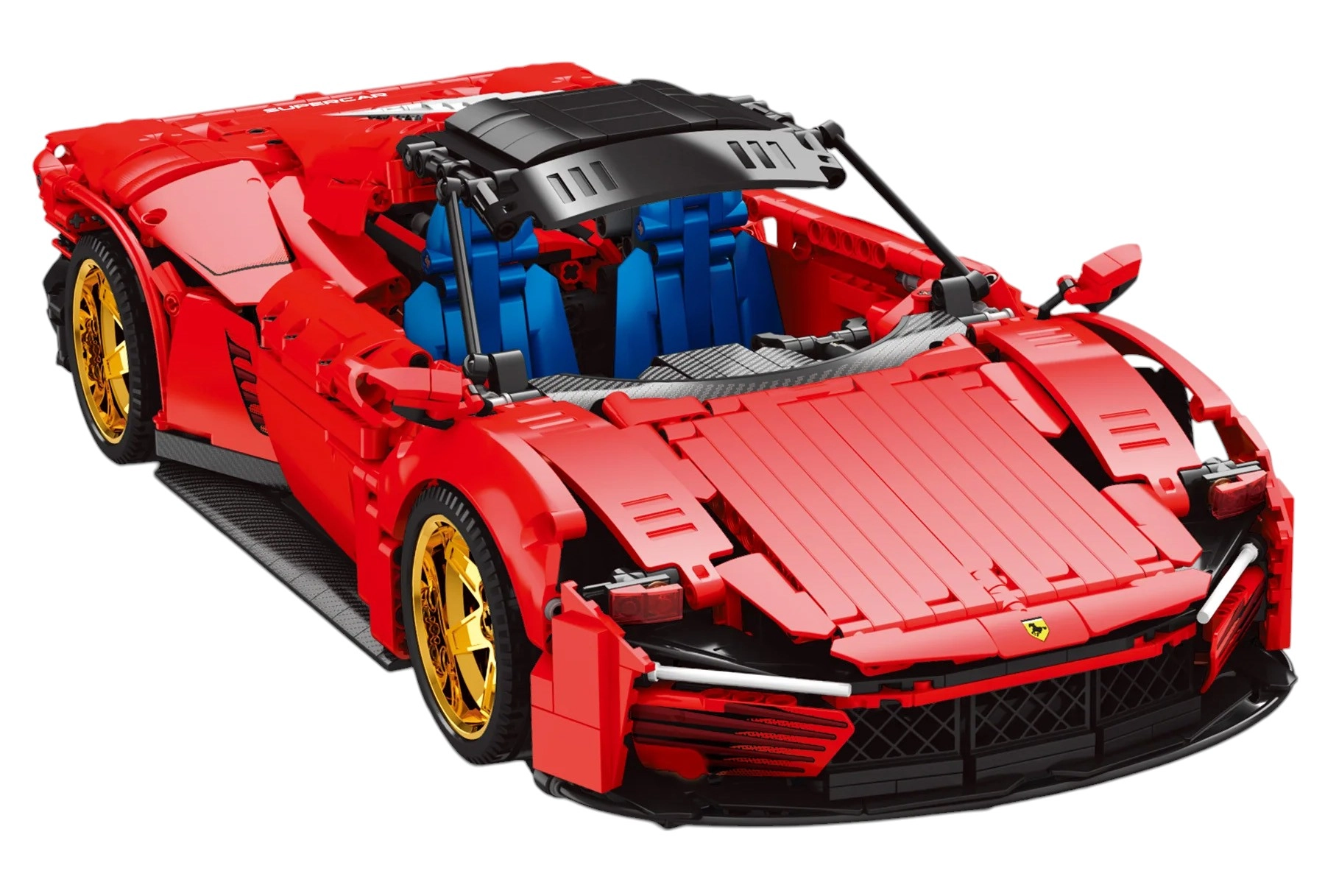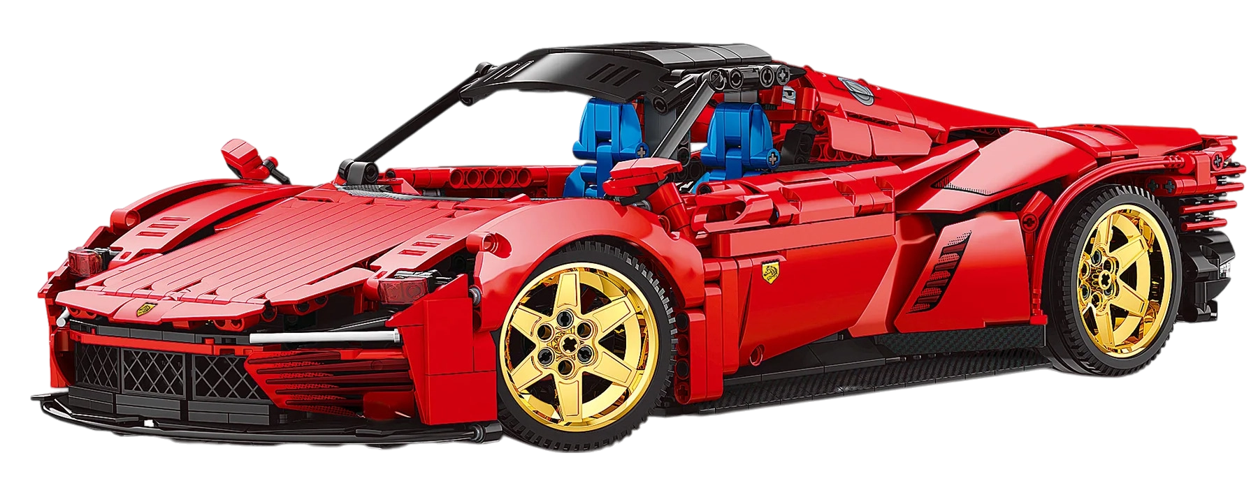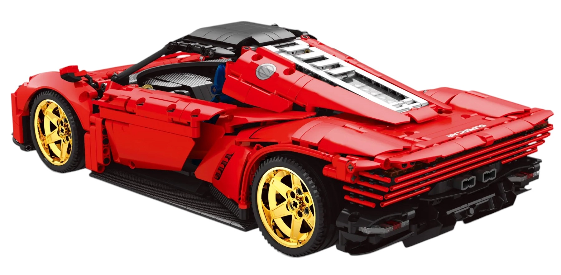Diseño realista con puertas abatibles y llantas doradas.