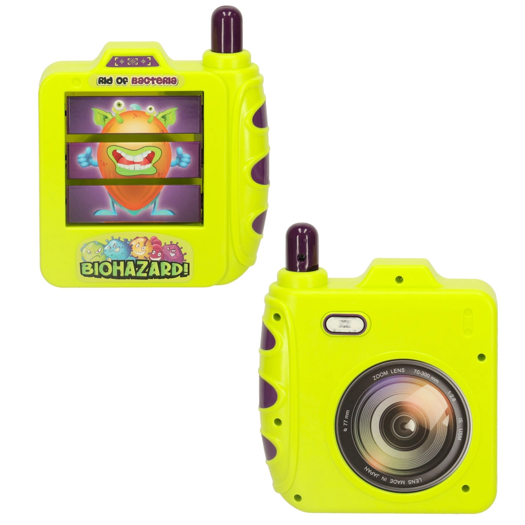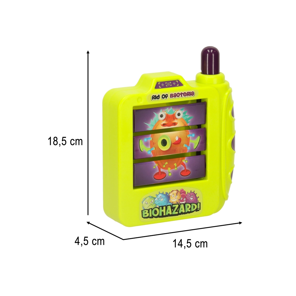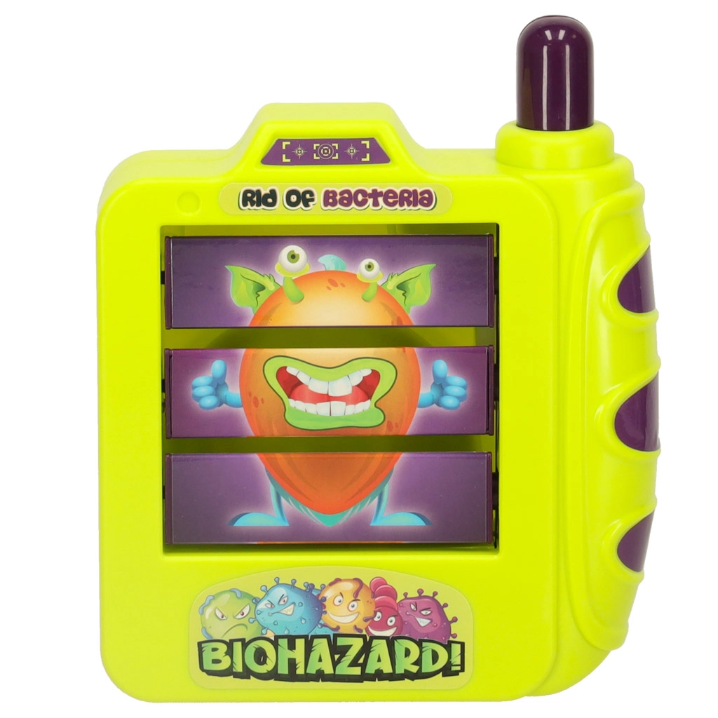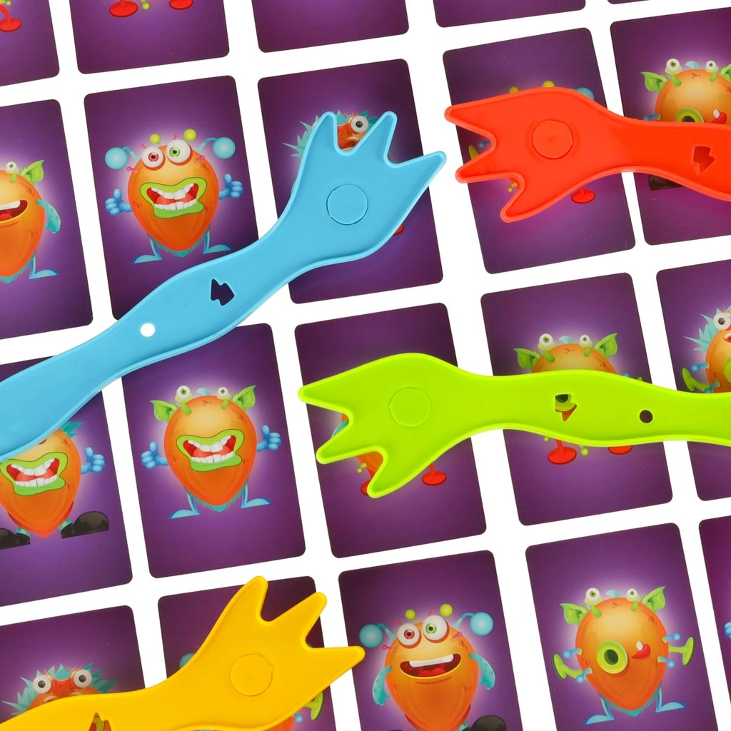 El dispositivo de plástico con ventanilla revela qué monstruo hay que buscar. Aporta emoción a cada ronda y motiva a los niños a actuar con rapidez.