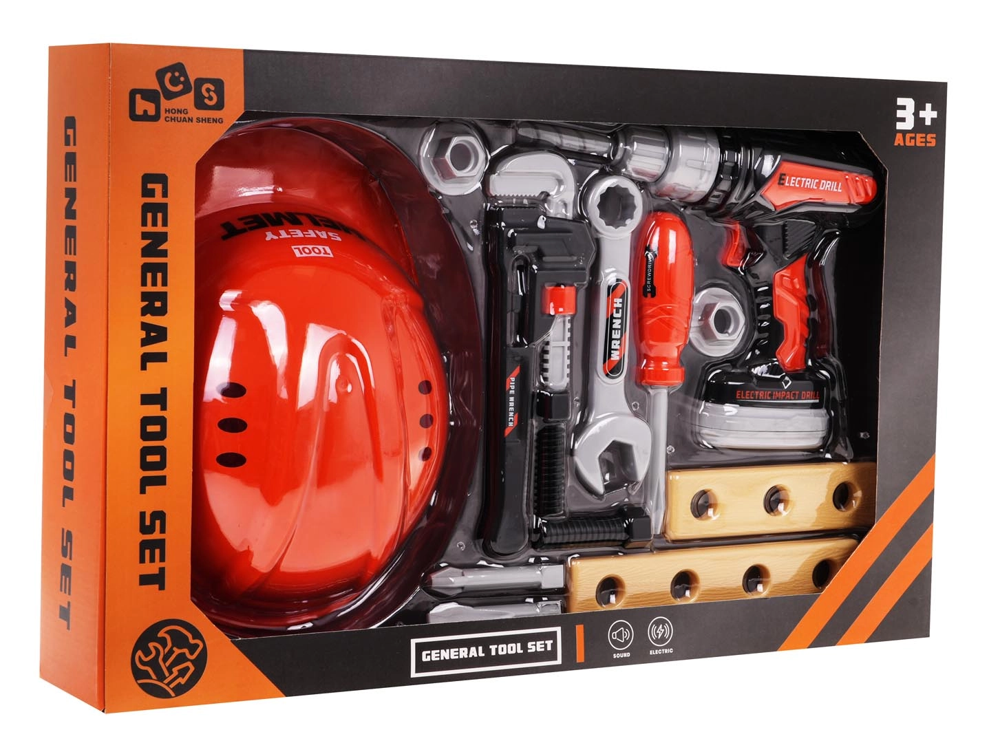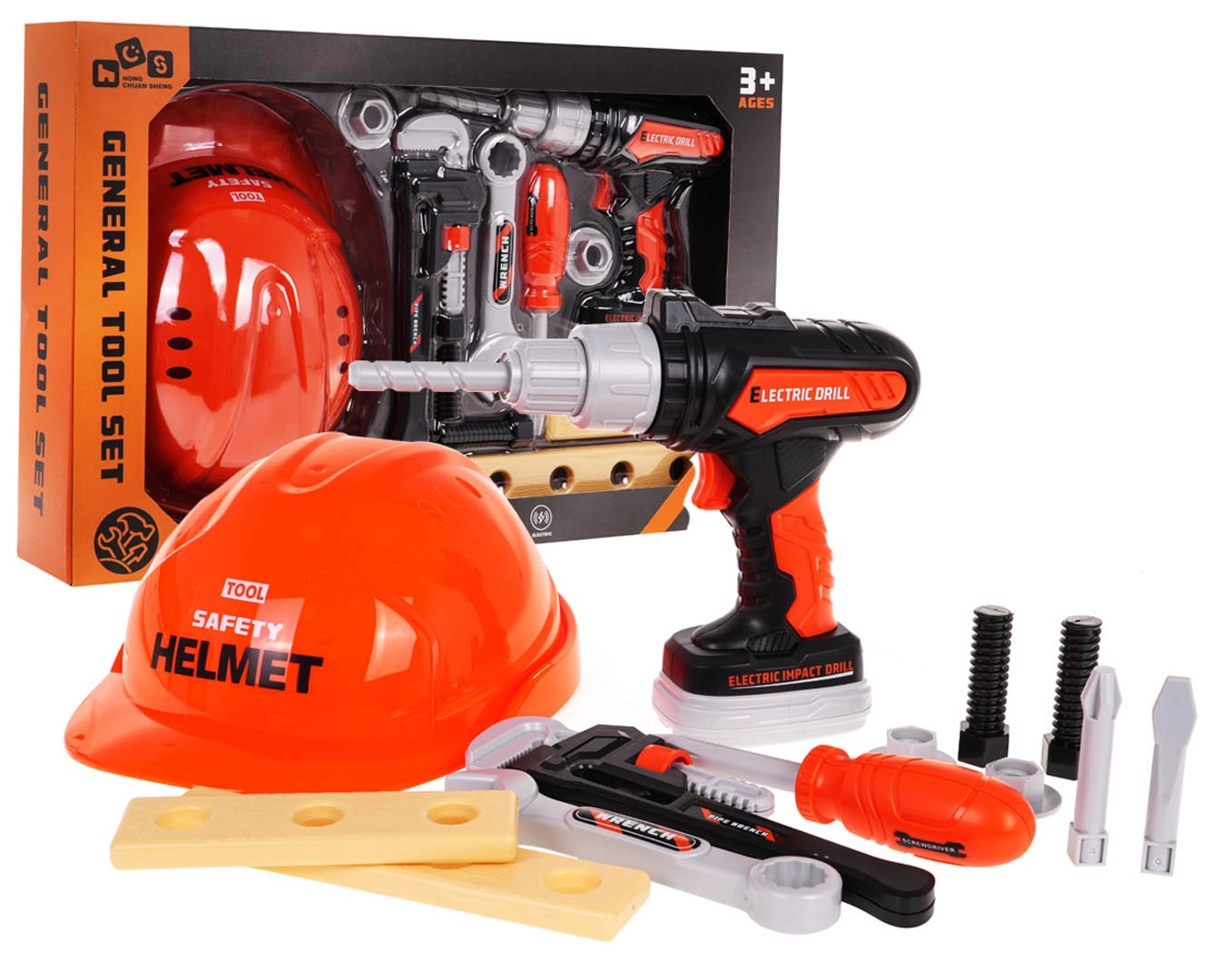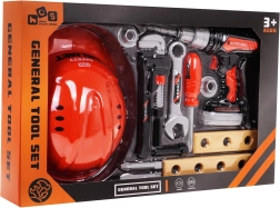 Este realista juego de herramientas para niños ofrece todo lo que un pequeño constructor necesita: casco de protección, taladro/destornillador eléctrico a pilas, destornillador, llaves, tornillos, tuercas y plaquitas de madera para practicar. Gracias a los plásticos de calidad, el set es resistente y seguro para el juego diario.