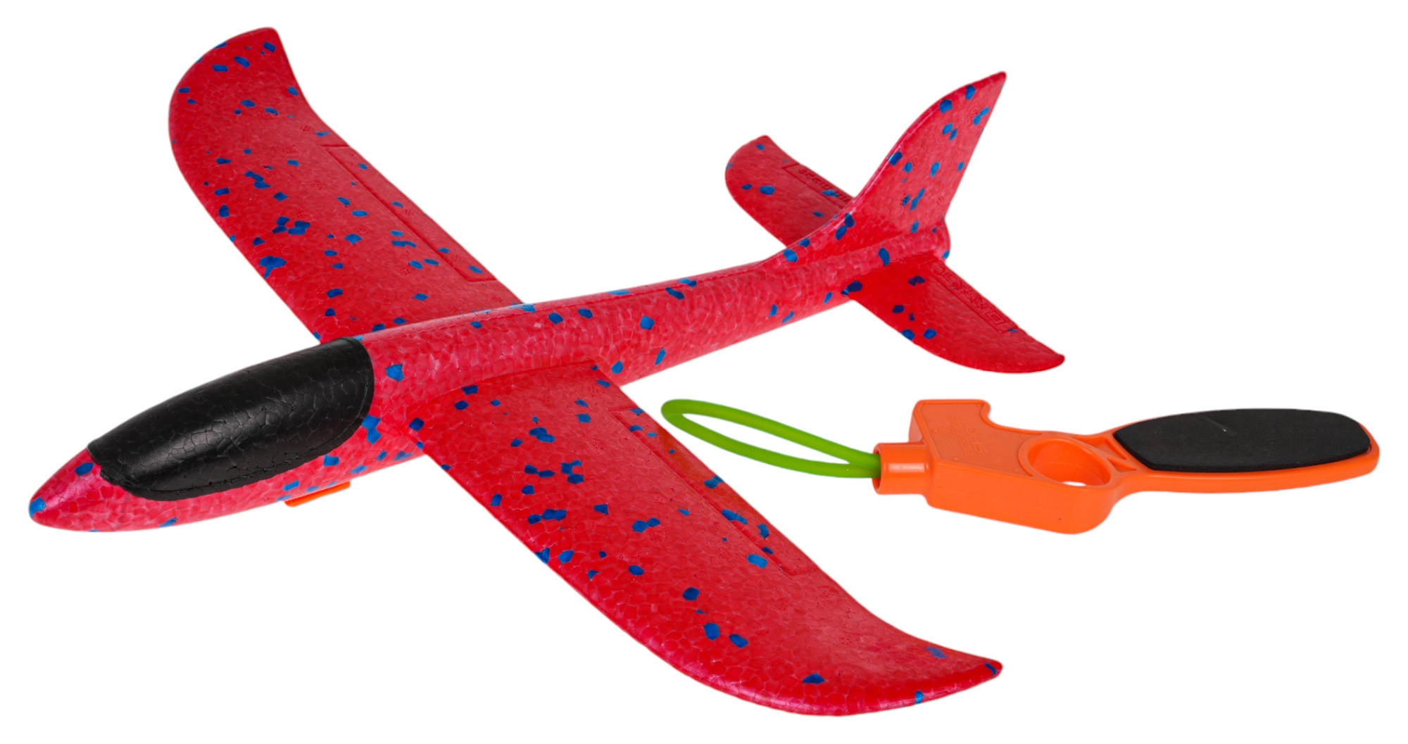 Este avión de espuma rojo está diseñado para vuelos estables y prolongados. Solo hay que enganchar la goma del tirachinas al elemento inferior del avión, tensar y soltar: la diversión bajo el cielo abierto está garantizada. El material resistente soporta caídas y un uso frecuente.