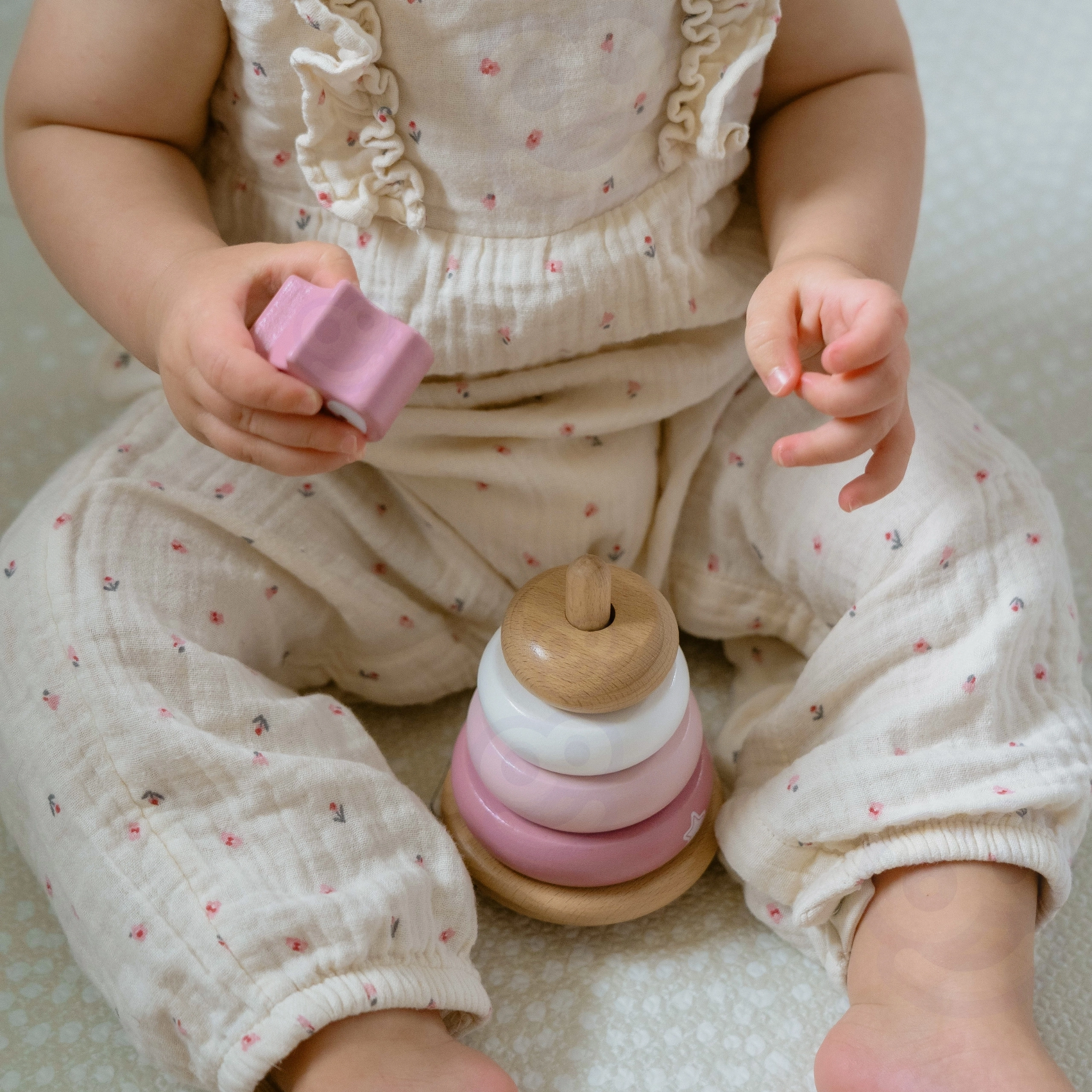 Las piezas seguras y suavemente lijadas se adaptan a las manos infantiles y el diseño en madera es ecológico y duradero. La pirámide es ideal para las primeras construcciones de torres y ofrece diversión tranquila y significativa sin pantallas.