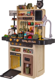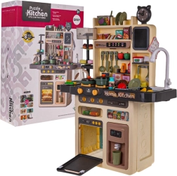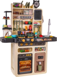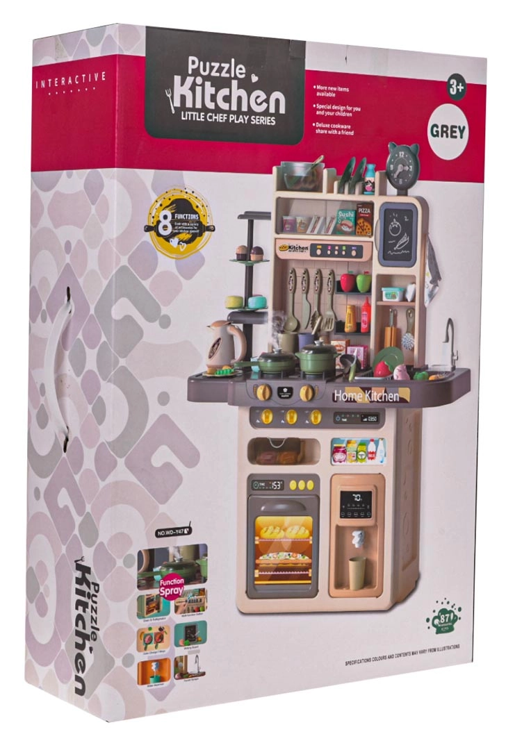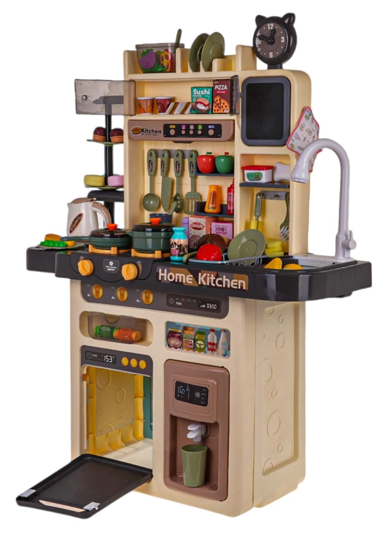 Esta espaciosa cocina infantil transforma la habitación en un pequeño taller gastronómico. Los niños disfrutarán de elementos realistas como quemadores iluminados con sonidos de freír y cocinar, vapor de uno de los fogones y grifo con agua corriente. Abre el horno, guarda los alimentos en la nevera con dispensador de agua, gira los mandos de control y enciende la campana con panel musical.