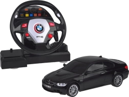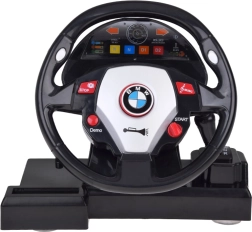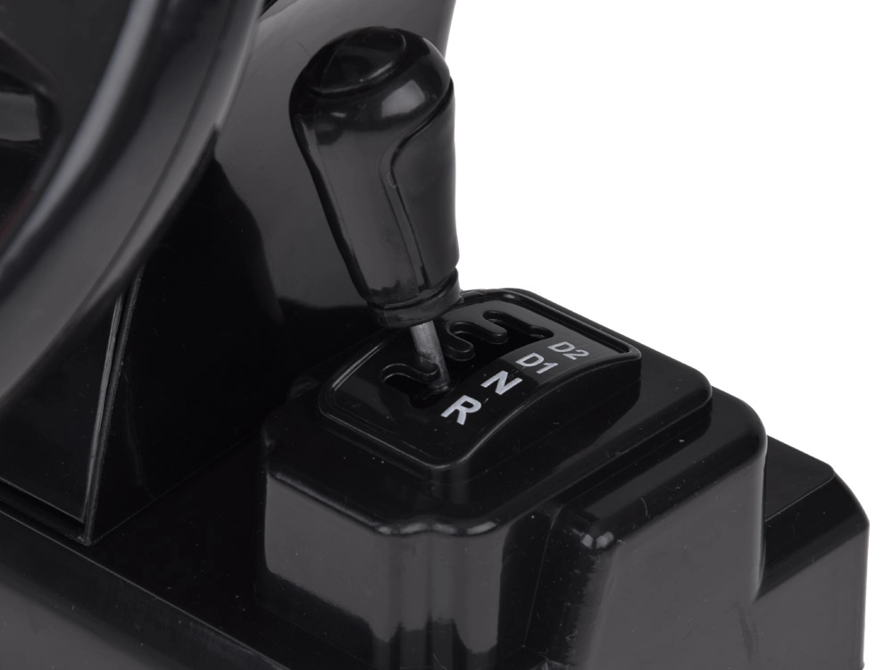 El volante está equipado con botones START, STOP, DEMO y MUSIC, que hacen el juego aún más divertido. El modo DEMO con retroiluminación a color muestra la conducción hacia delante y hacia atrás, mientras que la palanca permite elegir D1 (conducción rápida), D2 (conducción muy rápida), N (neutral) y R (marcha atrás). El coche tiene convergencia de ruedas ajustable para mayor estabilidad.