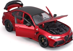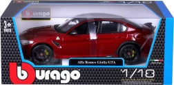 Descubra el modelo metálico de alto nivel ALFA ROMEO GIULIA GTA en atractivo rojo metalizado. La serie BBURAGO 1:18 Plus ofrece proporciones realistas, líneas de carrocería definidas y una atmósfera deportiva del coche conocido por su ligereza, rendimiento y dirección precisa. El modelo destaca por sus líneas aerodinámicas, pinzas de freno amarillas y un llamativo alerón trasero.