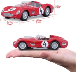 Tamaño ideal para conjuntos de coleccionista. El modelo es ligero, resistente y combina a la perfección con otros coches de la gama Ferrari Racing.