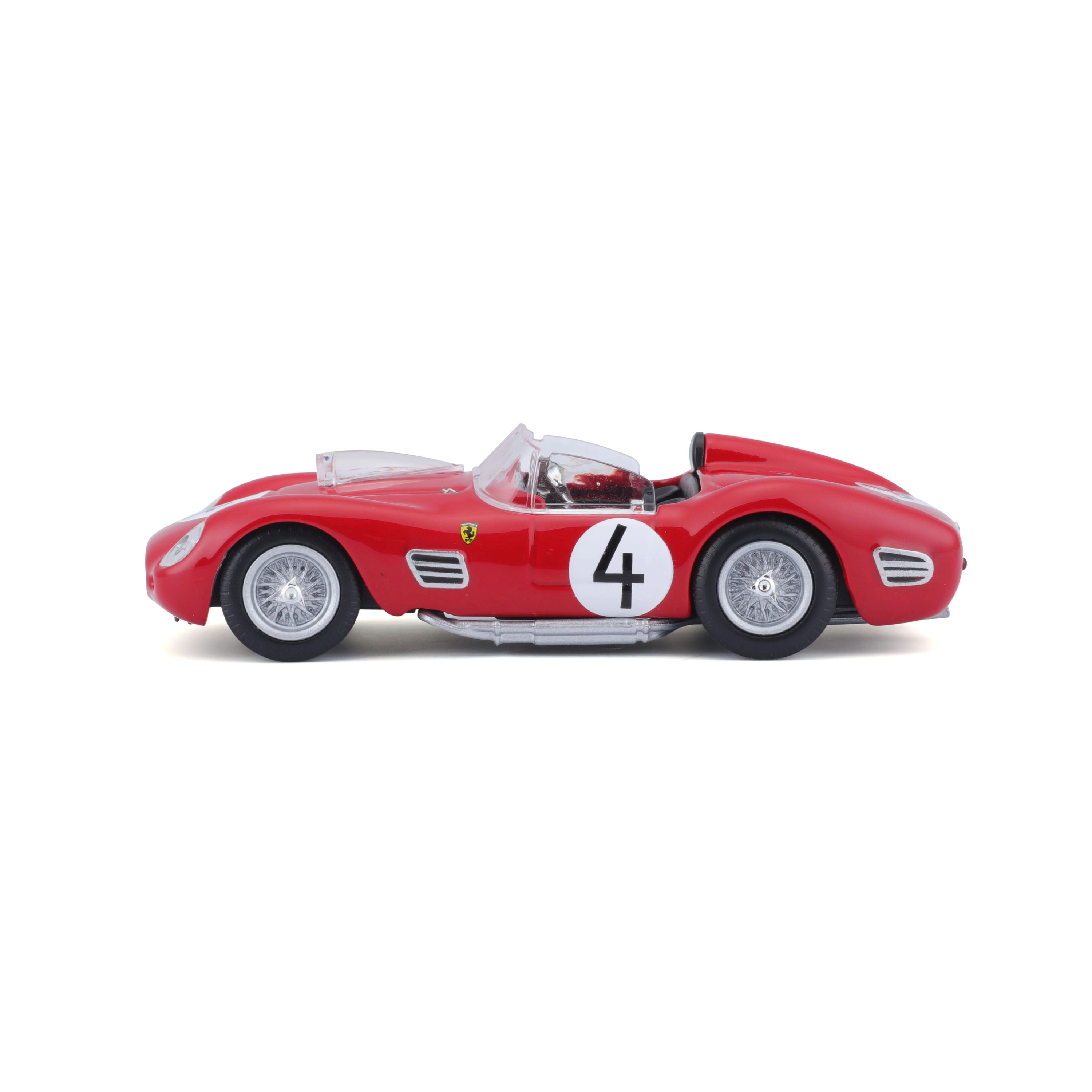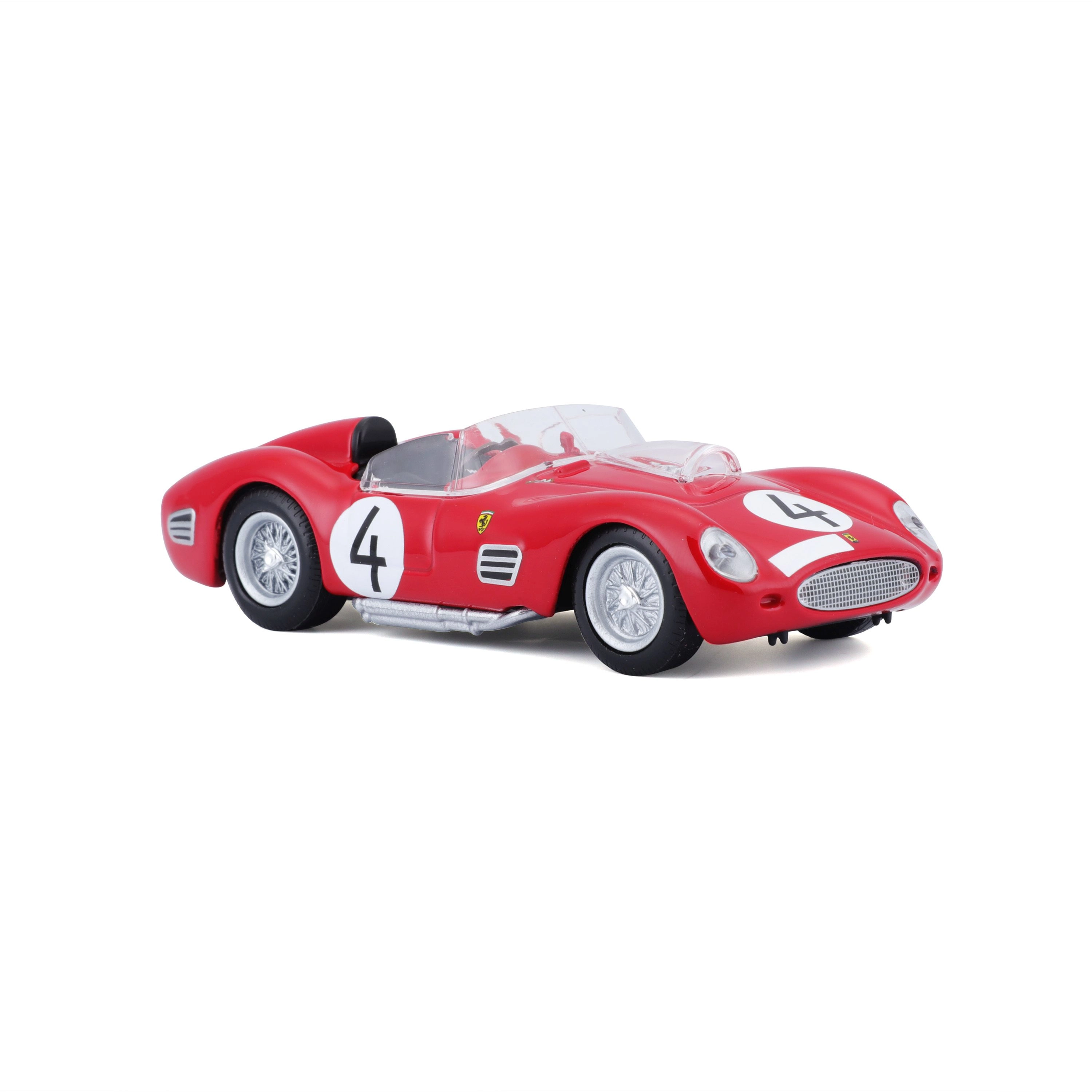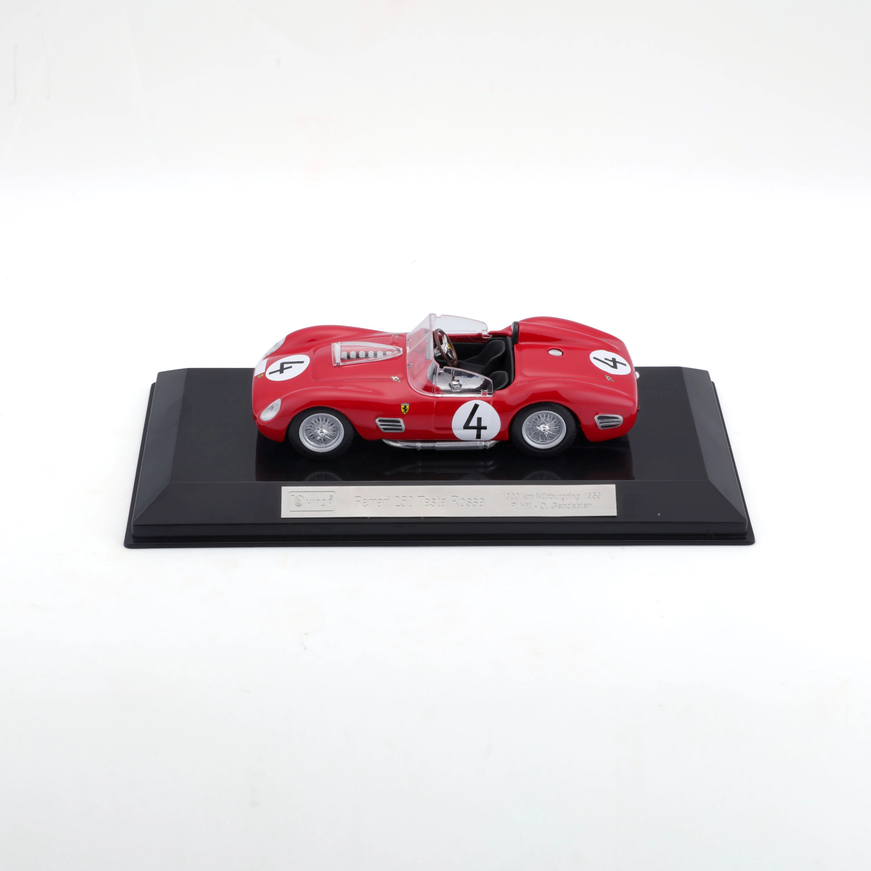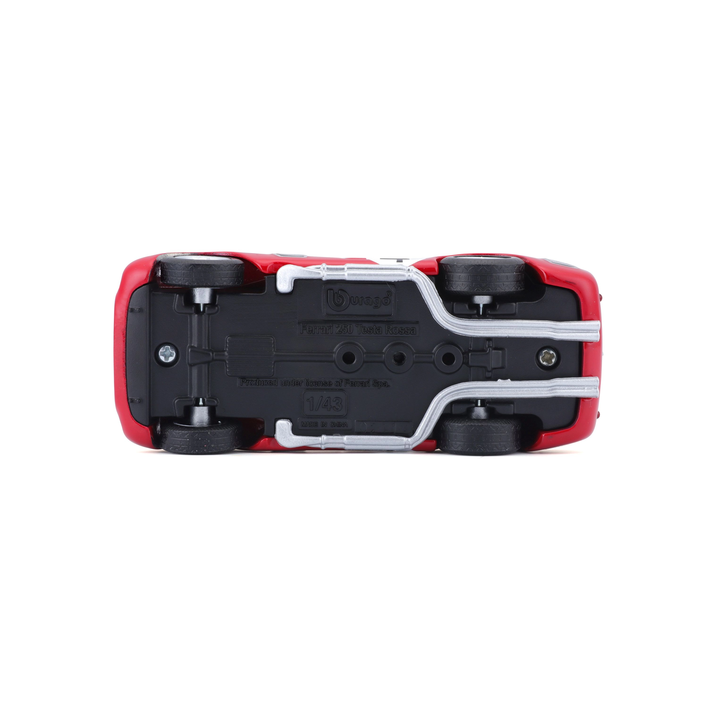 Descubre una leyenda del motorsport con un acabado preciso. Este modelo con licencia FERRARI 250 TESTA ROSSA a escala 1:43 ofrece detalles realistas como llantas de radios, escapes laterales, parabrisas transparente y dorsales de competición. Perfecto para vitrina o como regalo para amantes de los coches clásicos de carreras.