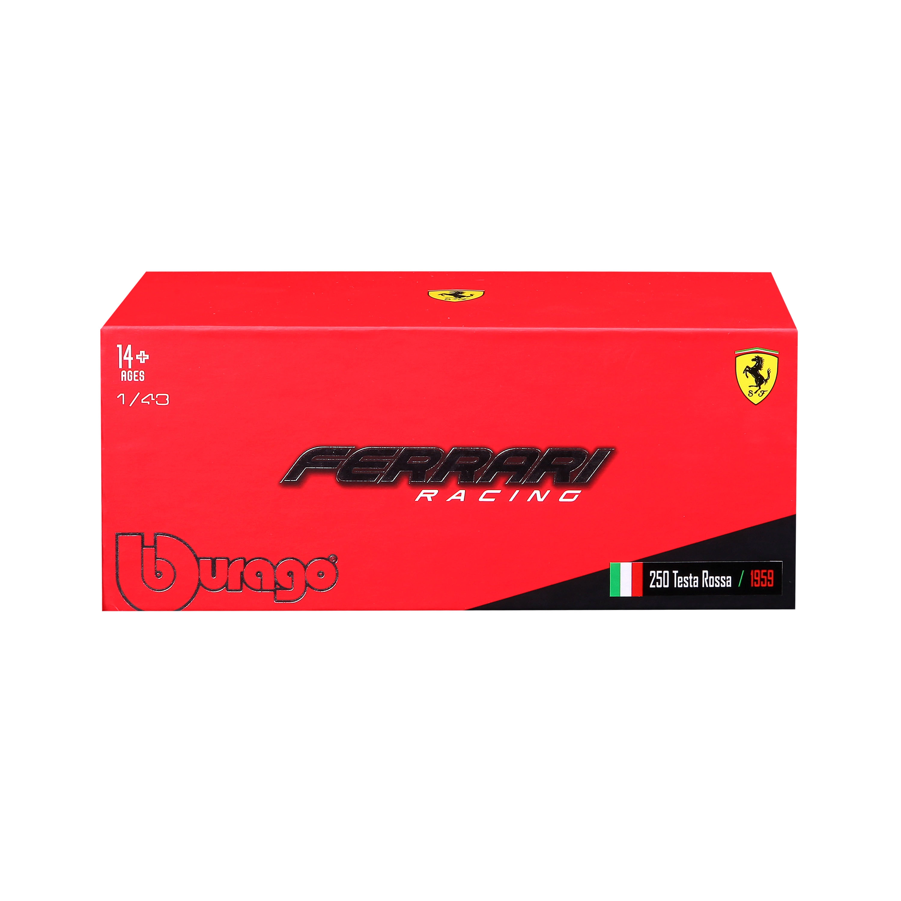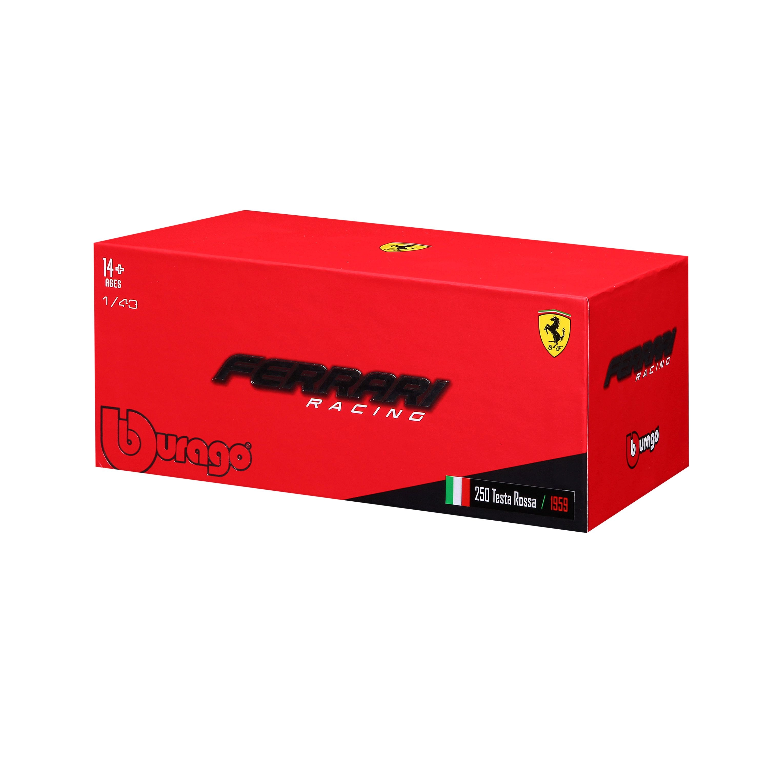 Caja atractiva con los logotipos de FERRARI y BBURAGO que protege el modelo y además es perfecta para exhibir o regalar.