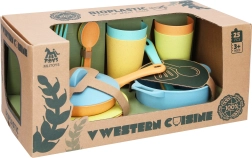La vajilla de cocina ecológica de bioplástico aporta diversión y aprendizaje a los niños. El set es ligero, seguro y resistente, ideal para el juego diario y para estimular la imaginación. Incluye todo lo necesario para una pequeña cocina: sartén con tapa, olla, platos, vasos y cubiertos. Adecuado para niños a partir de 3 años.