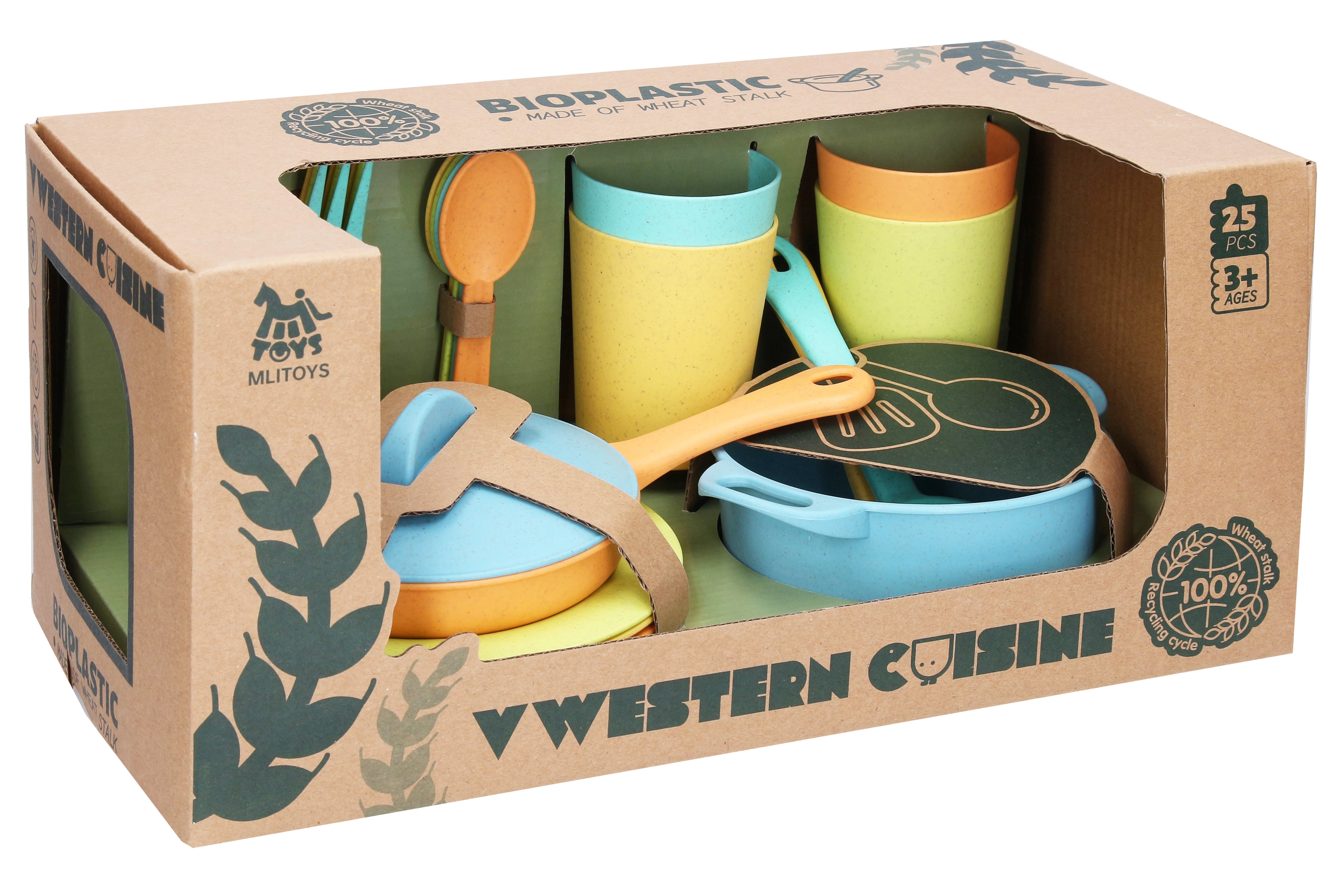 Este set infantil de vajilla de cocina hecho de bioplástico de calidad fomenta hábitos ecológicos y ofrece una experiencia de cocina realista sin desorden. Gracias a su peso agradable y diseño seguro, es perfecto para la habitación infantil y cocinitas de juego.