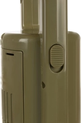 - Aspiradora realista con dos accesorios (ancho con ruedas y cabezal móvil, estrecho para esquinas) y depósito transparente para la “suciedad”.