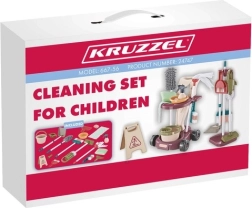 Este gran set de limpieza para niños KRUZZEL 18 en 1 ofrece todo lo que los pequeños ayudantes necesitan para imitar la limpieza real. Incluye un carrito robusto con dos estantes y ganchos, un soporte independiente para utensilios y una aspiradora vertical de juguete para 3× pilas AA que aspira bolitas ligeras y cuenta con depósito transparente. Gracias a los plásticos de calidad PP, HIPS, ABS y otros materiales, el set es ligero, resistente y seguro para el juego infantil.