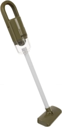 Aspiradora vertical para 3× AA con cabezal ancho para suelos y boquilla estrecha para esquinas. Aspira bolitas ligeras, tiene depósito transparente y un cómodo encendido con interruptor deslizante.