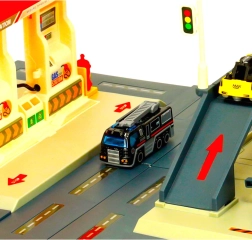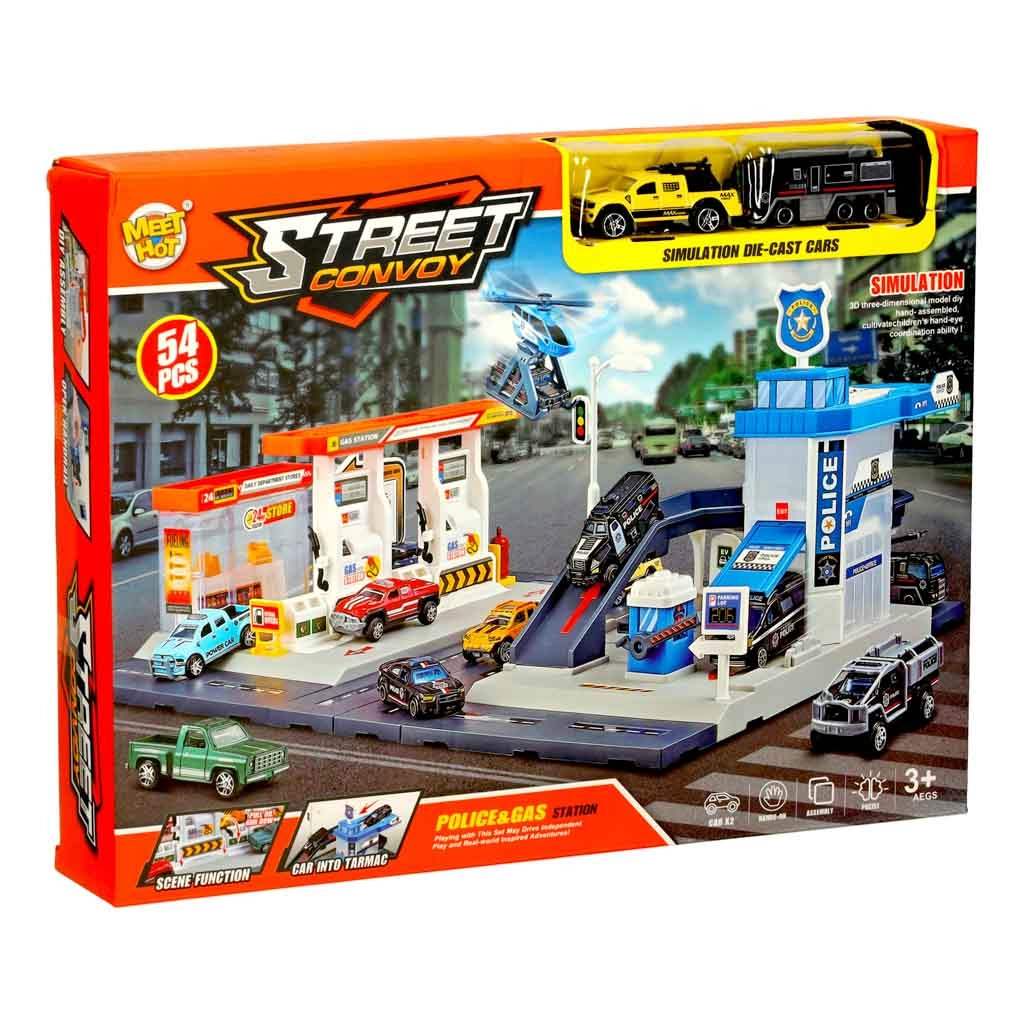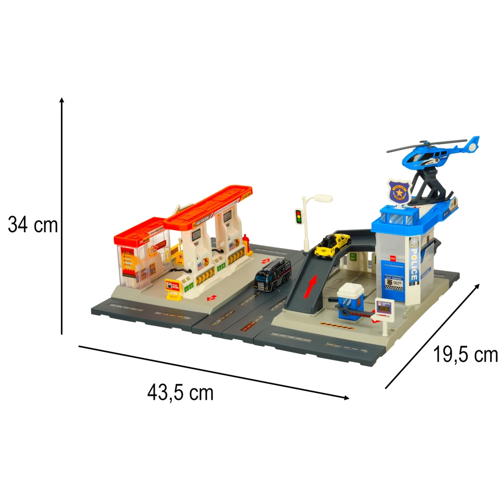 Con este juguete único, los niños se trasladan a un mundo de fantasía. El juguete incluye una estación, aparcamiento policial y vehículos, que permiten crear diversos escenarios de juego. Cada elemento está diseñado para acercar la realidad de una pequeña ciudad.