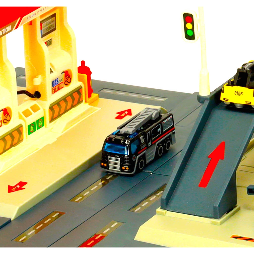 Los juguetes incluyen accesorios realistas como rampas, iluminación callejera y señales, lo que añade el toque perfecto al juego.