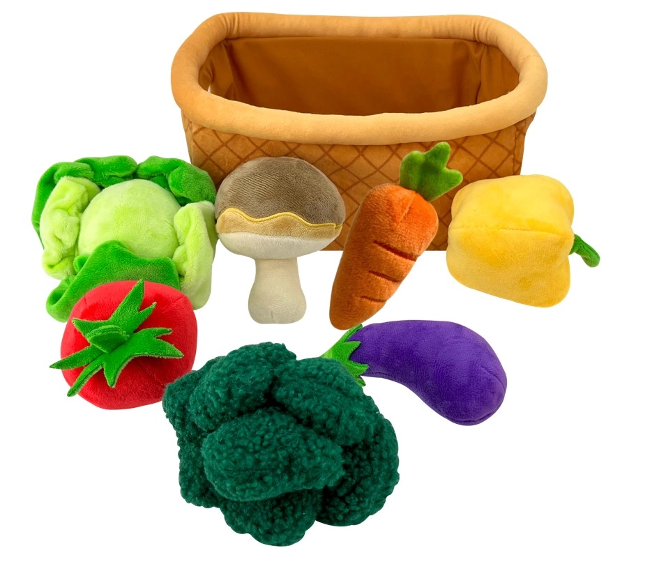 Incluye siete imitaciones diferentes de verduras y un hongo para un juego más diverso.