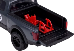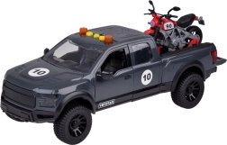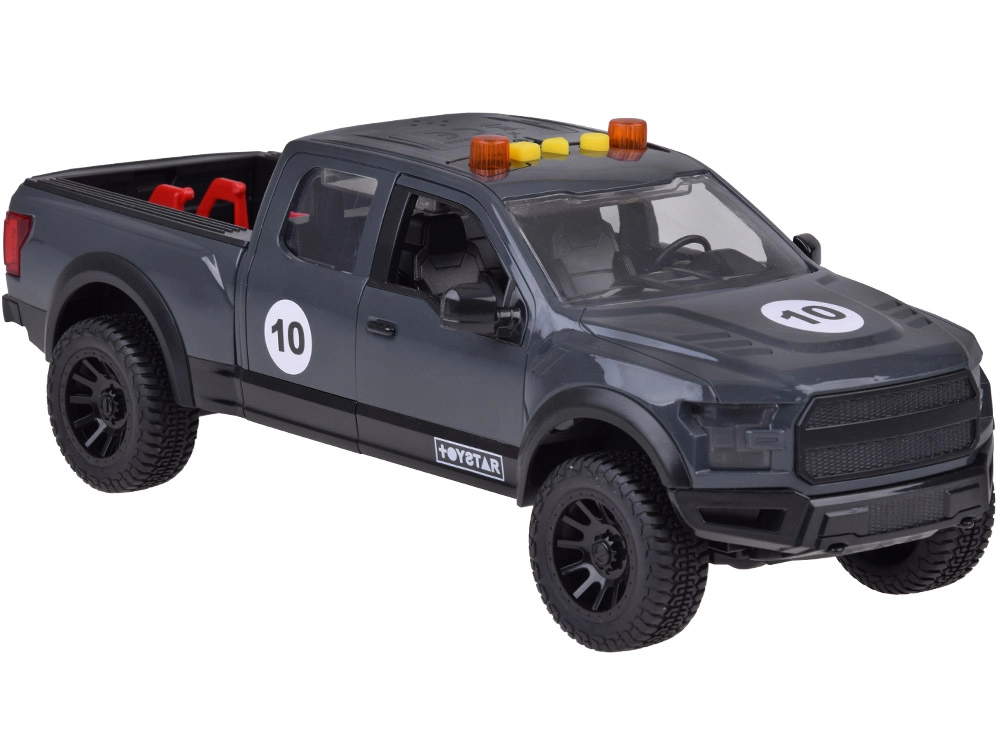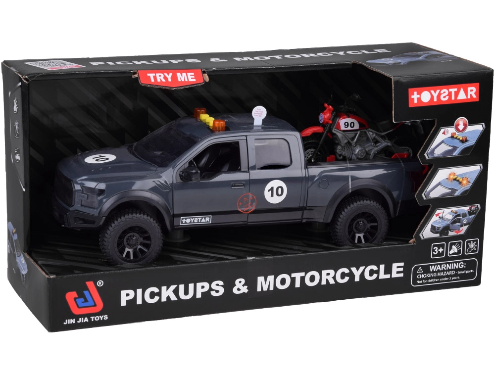 El juguete pickup está diseñado para ofrecer a los niños espacio para el juego creativo. En el portador trasero se coloca una motocicleta desmontable, que incrementa la interactividad del juguete. En el techo del vehículo hay tres botones que activan las balizas luminosas para experiencias realistas. El juguete fomenta la creatividad infantil, las habilidades manuales y la imaginación.