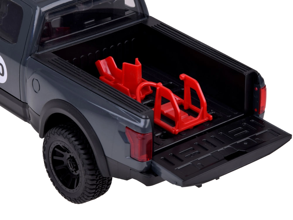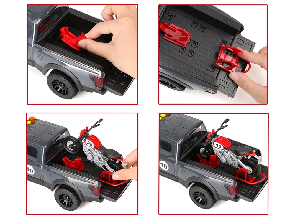 La parte trasera del pickup cuenta con una motocicleta desmontable, lo que permite aún más opciones de juego interactivas.