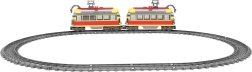 La pista consta de 16 tramos curvos y 4 rectos, que juntos crean un circuito estable para la circulación fluida del tranvía de dos coches.