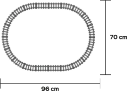 - Vía 96 × 70 cm – 16 curvas + 4 rectas