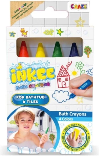 ¡Descubre la diversión con los lápices de colores INKEE durante el baño! Cuatro colores vivos darán vida a cualquier cuarto de baño y fomentarán la creatividad de tu hijo.