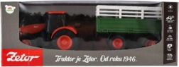 El tractor rojo con diseño ZETOR y remolque verde se desacopla fácilmente para diferentes trabajos de granja y un juego aún más divertido.