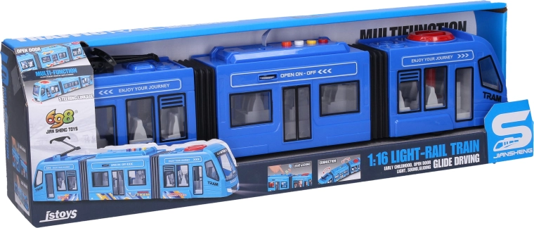 Tranvía realista para pequeños y grandes aficionados al transporte urbano. Ofrece efectos de luz y sonido, ruedas de inercia y un manejo sencillo mediante botones en el techo. Gracias a la apertura de las puertas centrales y al giro de las ruedas delanteras, el juego es aún más divertido. Las pilas 3× AG13 están incluidas en el paquete, para que puedas salir a la ruta de inmediato.