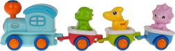 Tres vagones desmontables con figuras de dinosaurios extraíbles fomentan historias creativas y el juego independiente.
